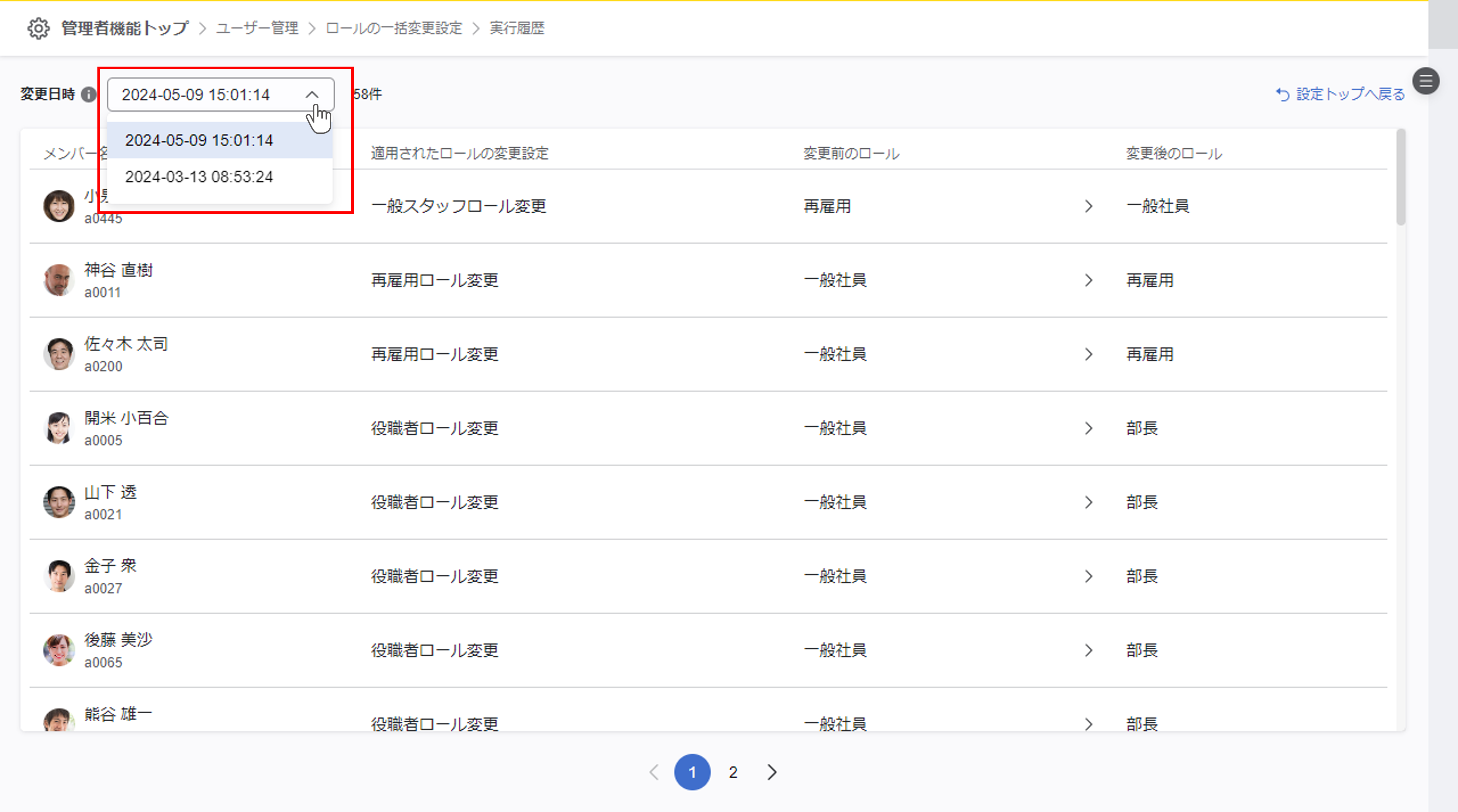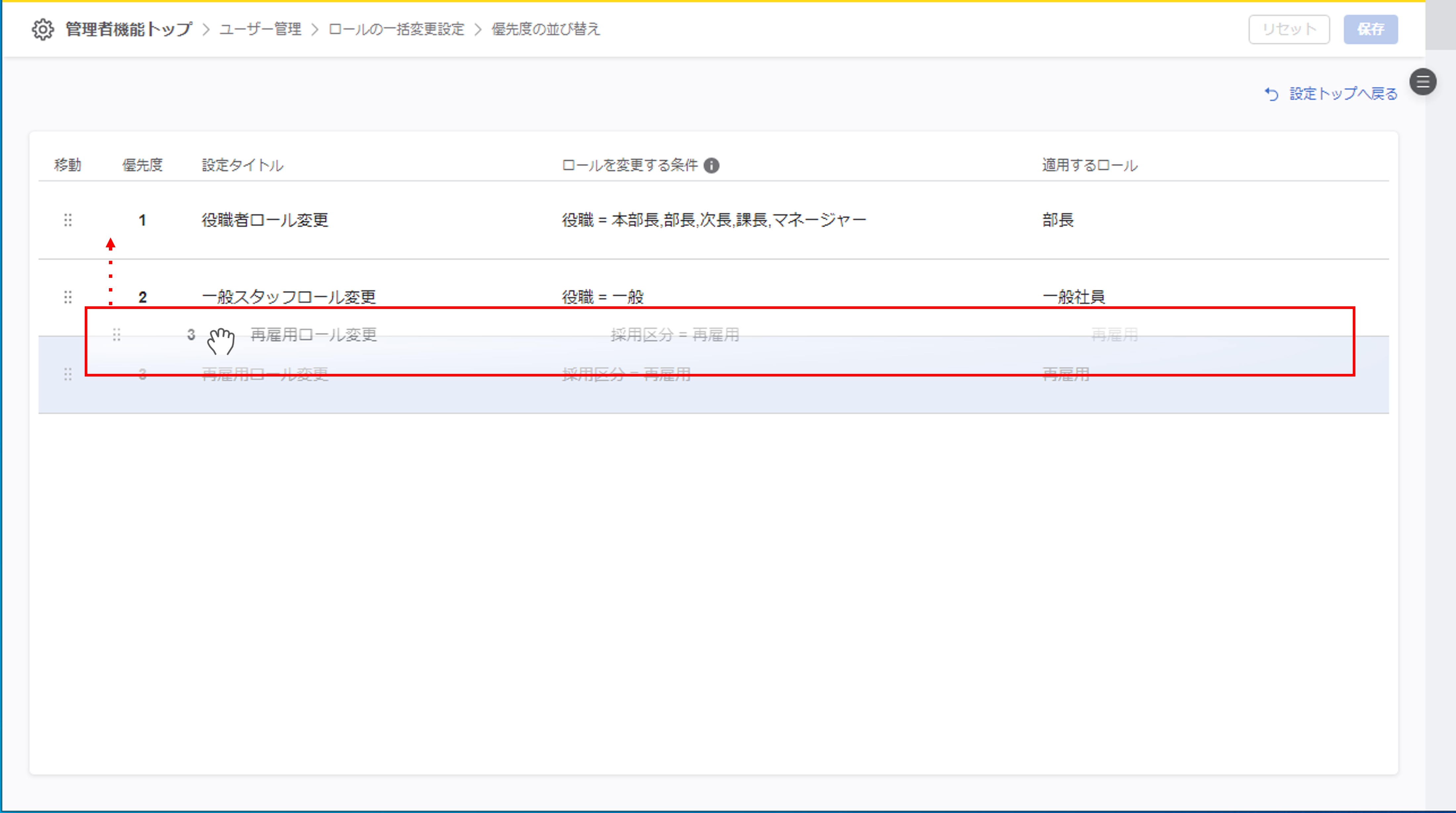 あらかじめ設定した条件に合致するユーザーのロールを一括で変更できる「ロールの一括変更設定」をより使いやすく改善しました。