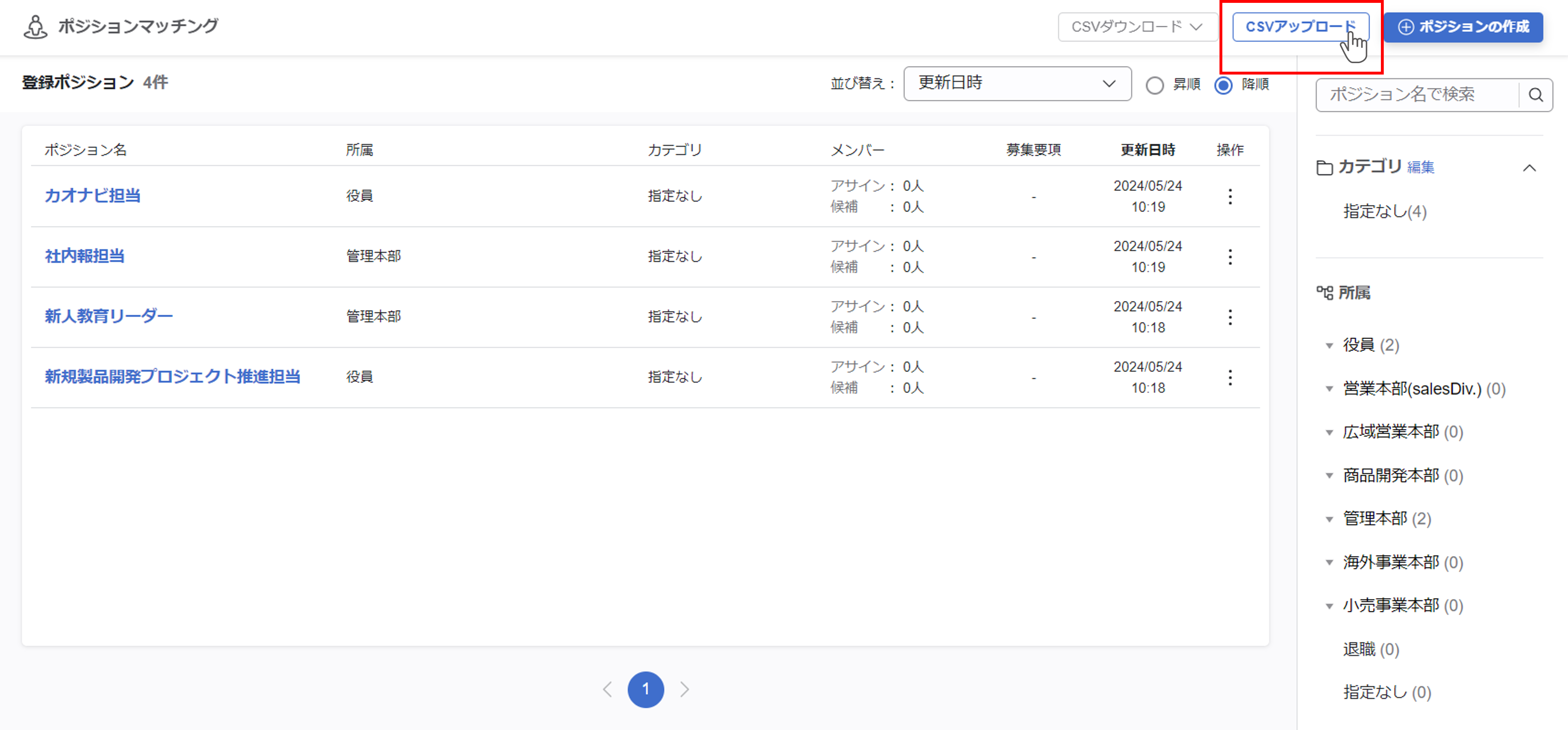 ポジションマッチングにおいて、ポジションをCSVファイルでアップロードきるようになりました。