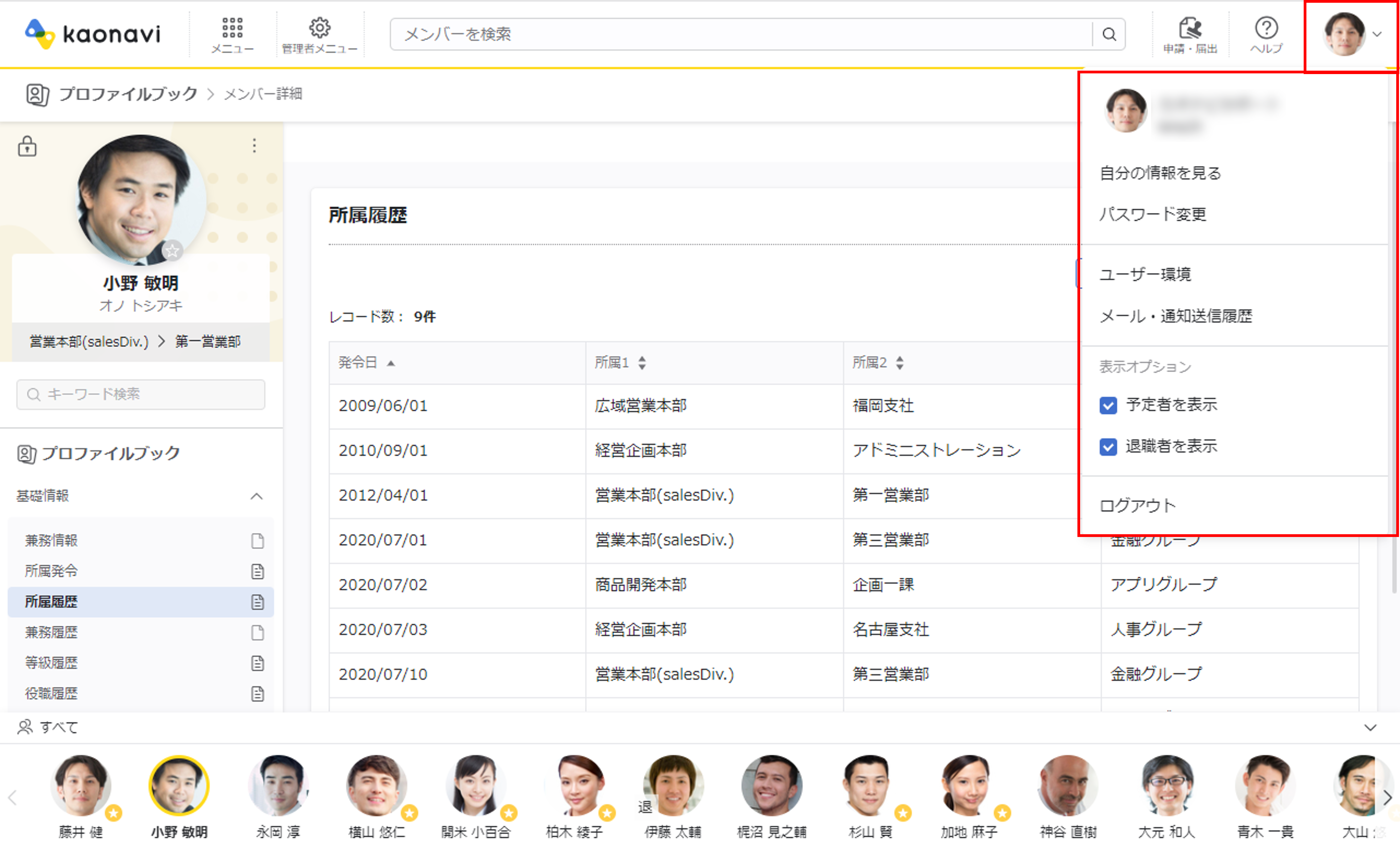 カオナビ画面のデザインの一部を変更しました。主な変更は以下の通りです。