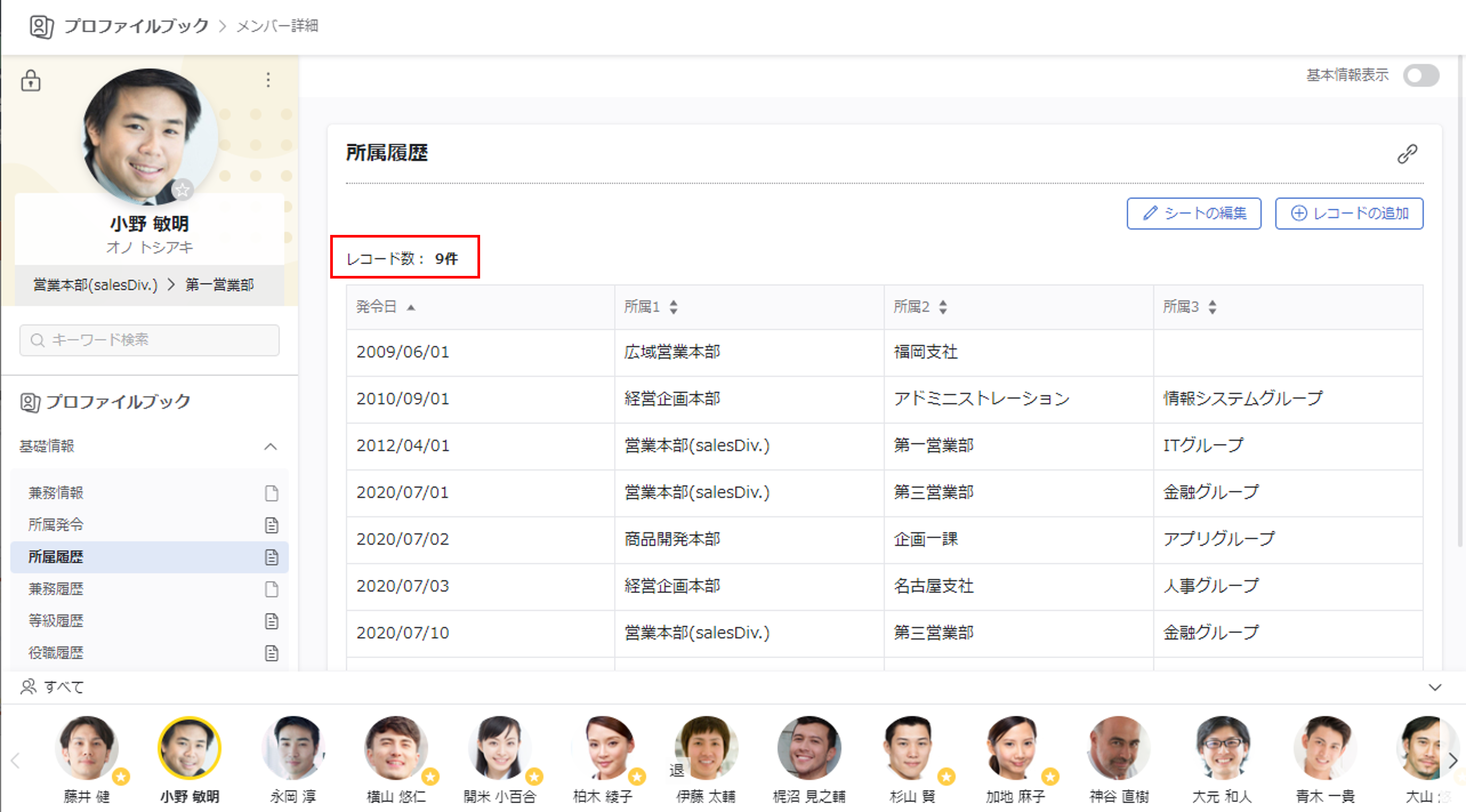 【メンバー詳細】複数レコードシートのレコード件数を表示する