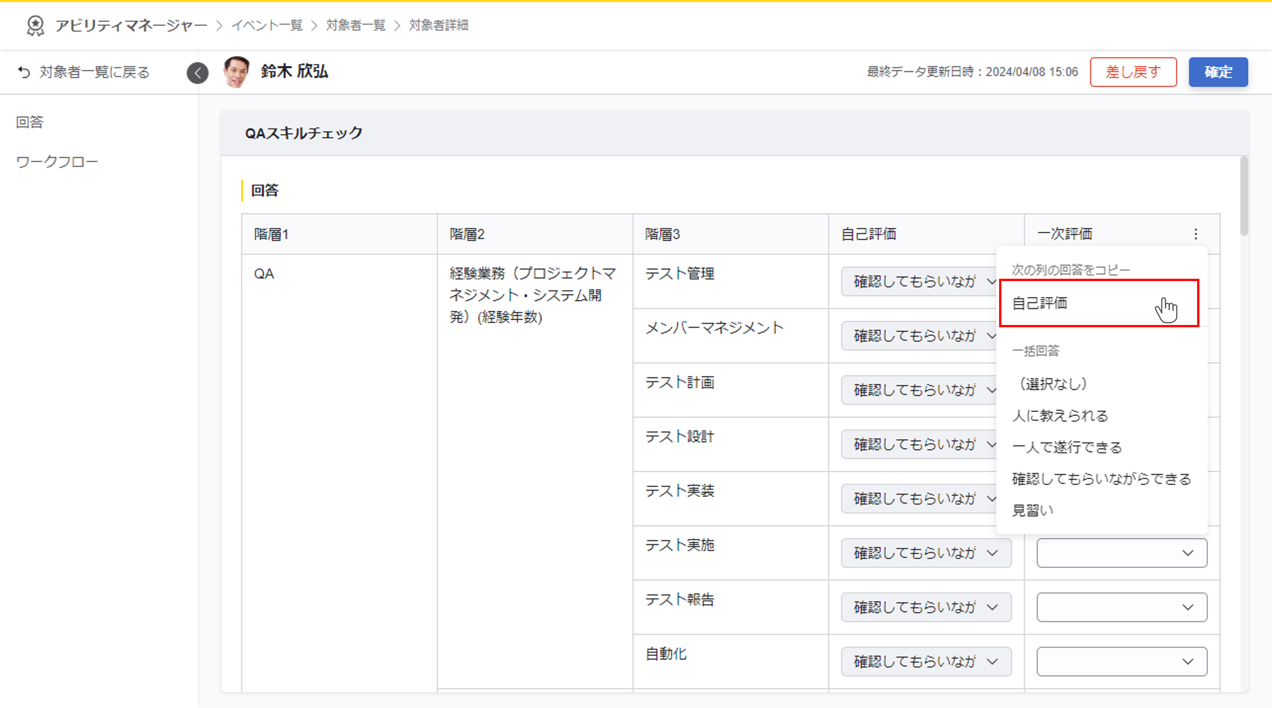 自身の回答列に、一律で同じ選択肢を入力できます。