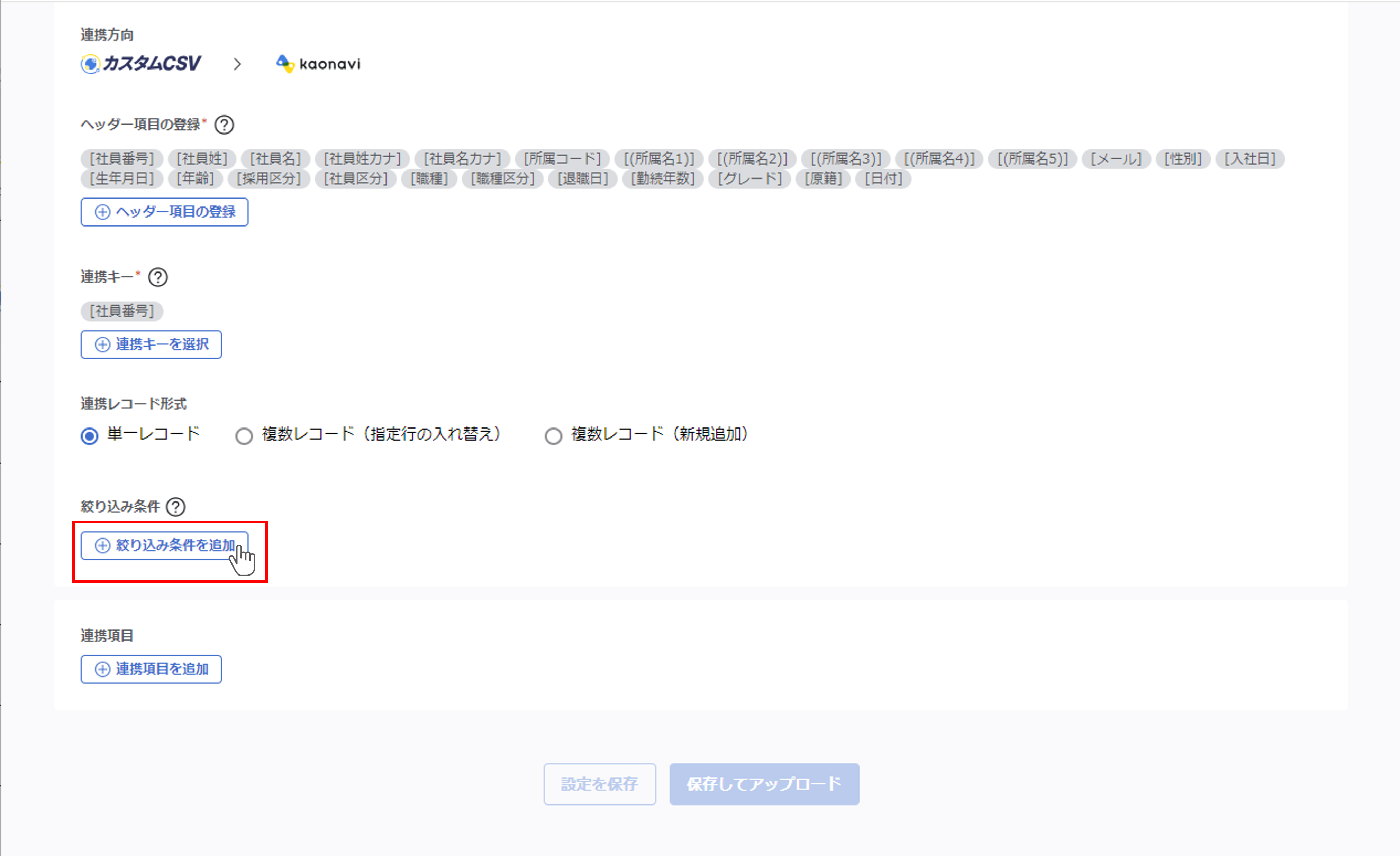 1.カスタムCSV連携で絞り込み条件を設定できるようになりました