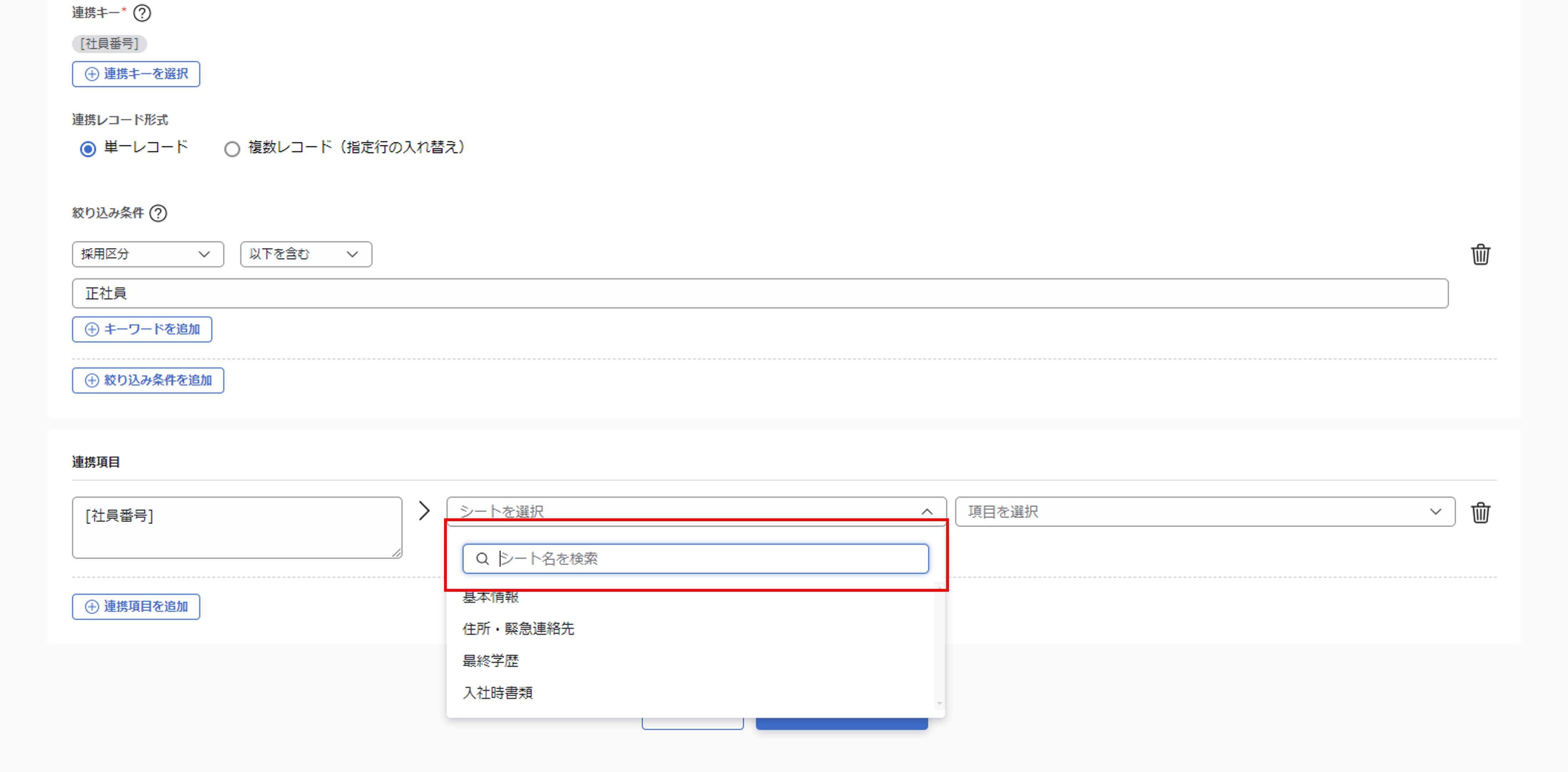 連携するCSVファイルに含まれる従業員データのうち「正社員のみを取り込む」などに対応できます。