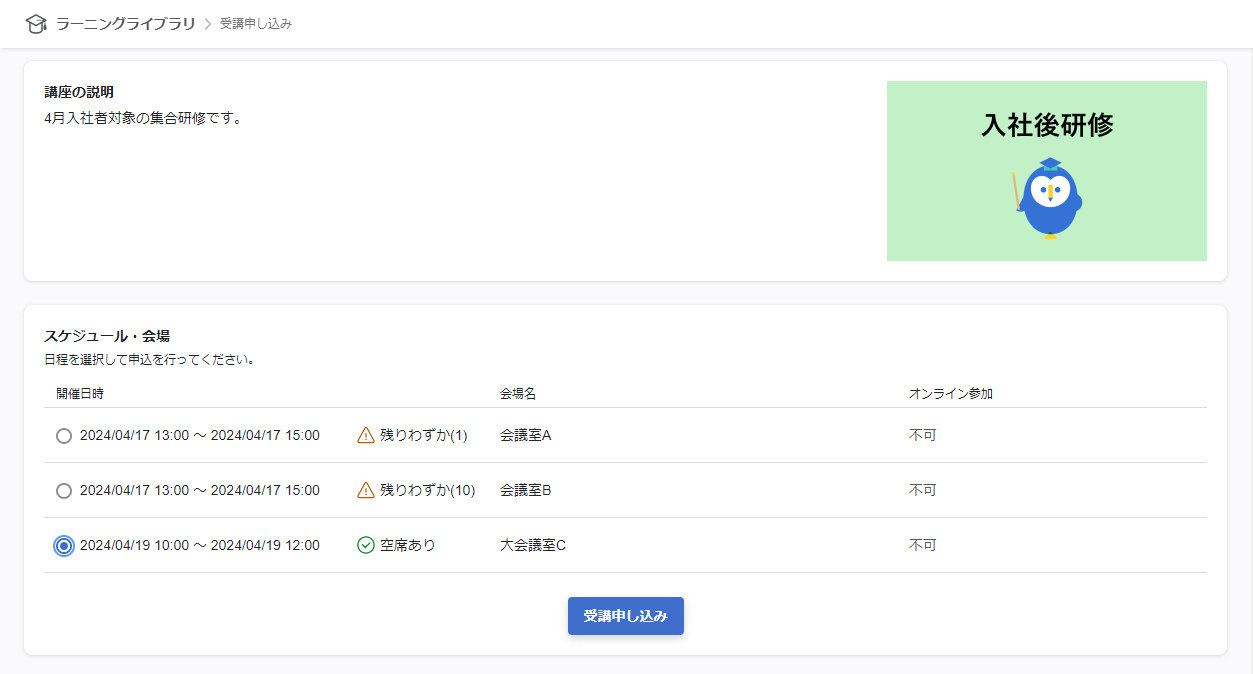 申し込み者を募り、講座内で出欠状況の管理をすることができます。