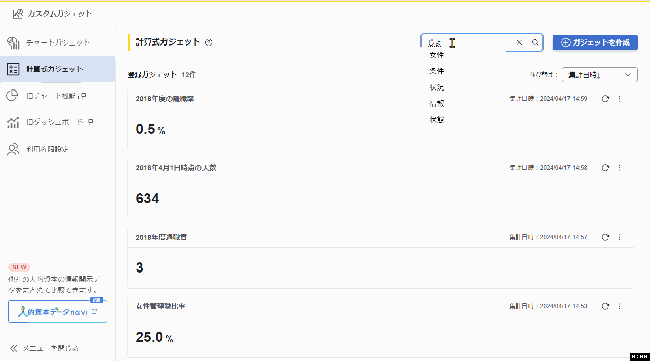 たくさんのガジェットがある時、キーワードで絞り込んで表示することができます。