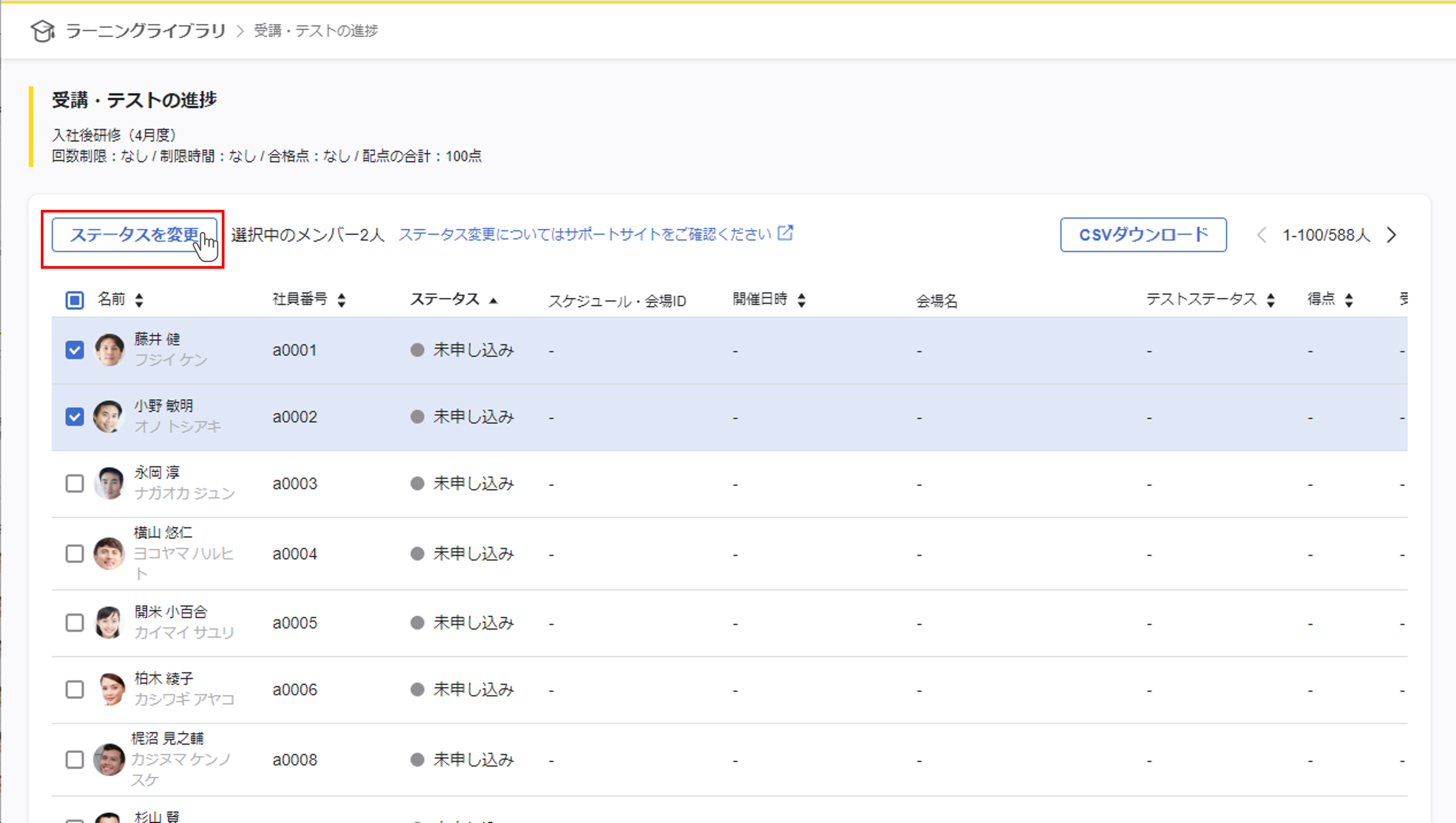 また、絞り込み機能もあるので、講座がたくさんあっても絞り込んで確認できます。