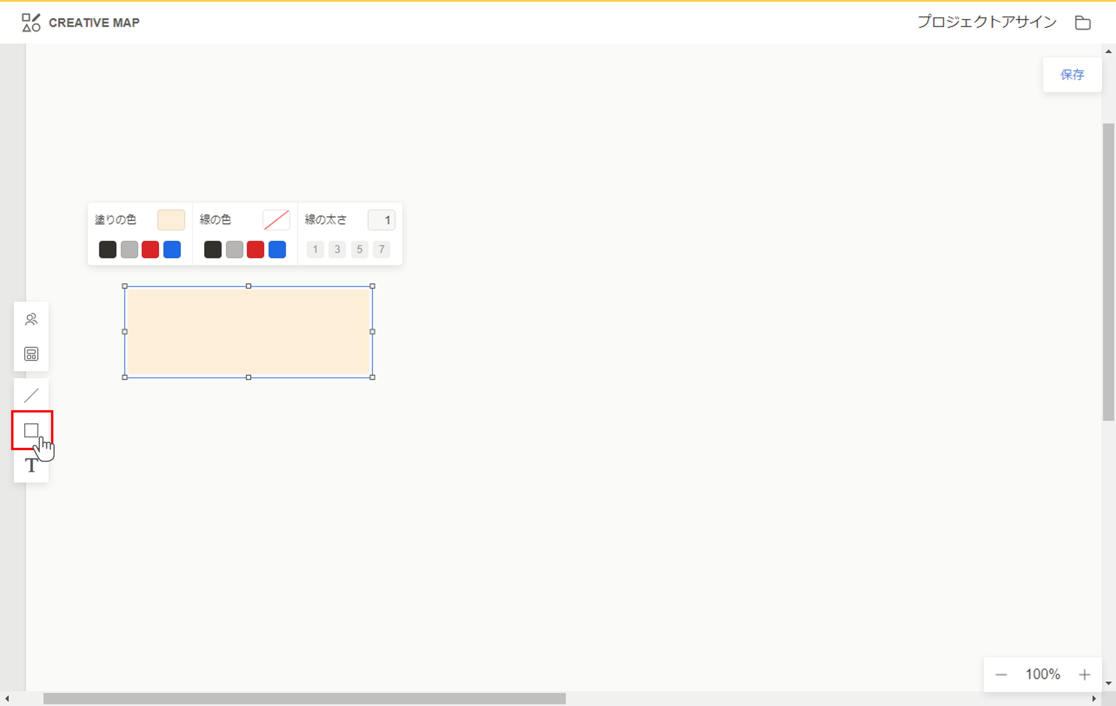 ①ツールボックスからシェイプツールを選択し、配置していきます。