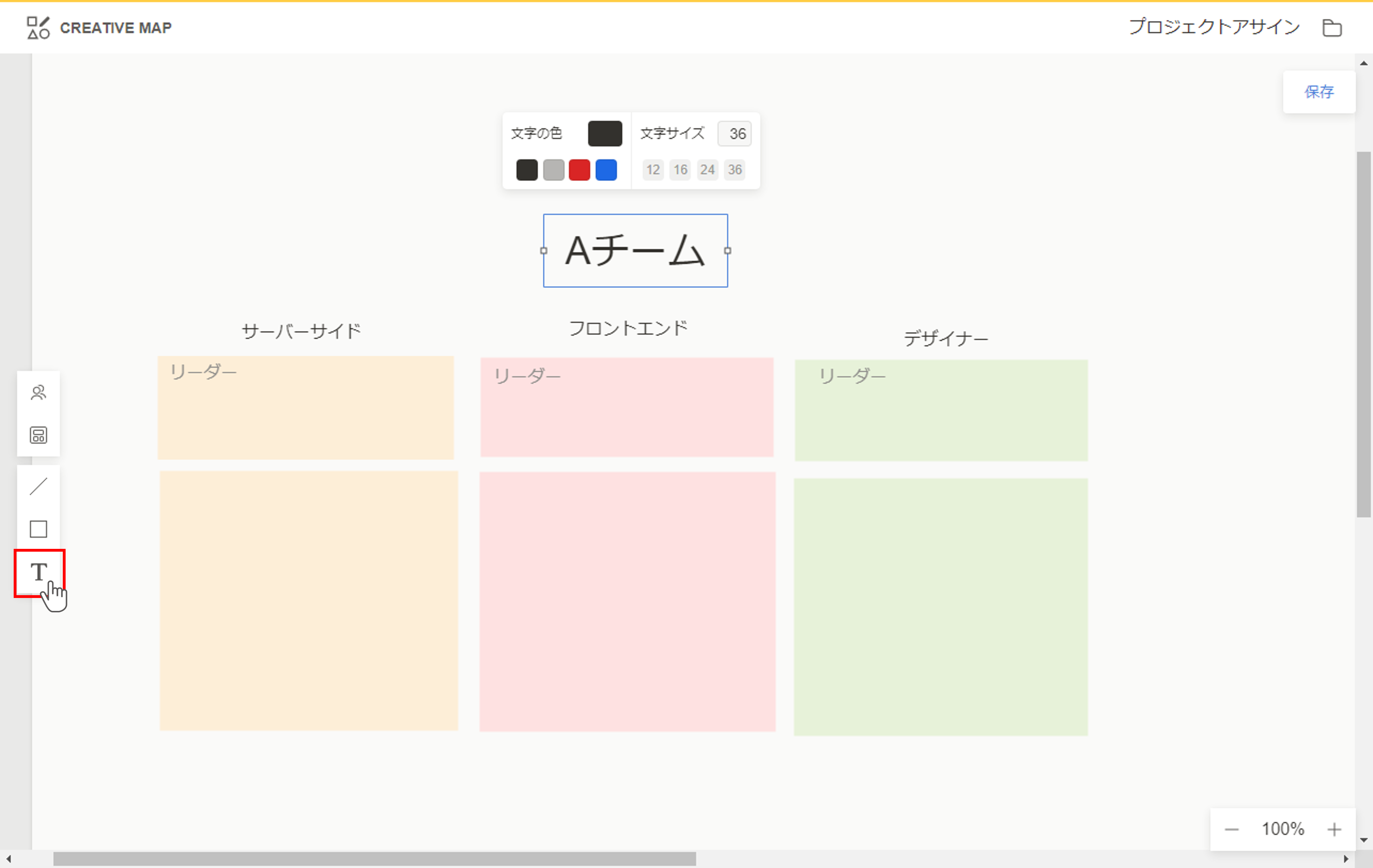 オブジェクトをクリックすることで色や文字サイズを変更できます。