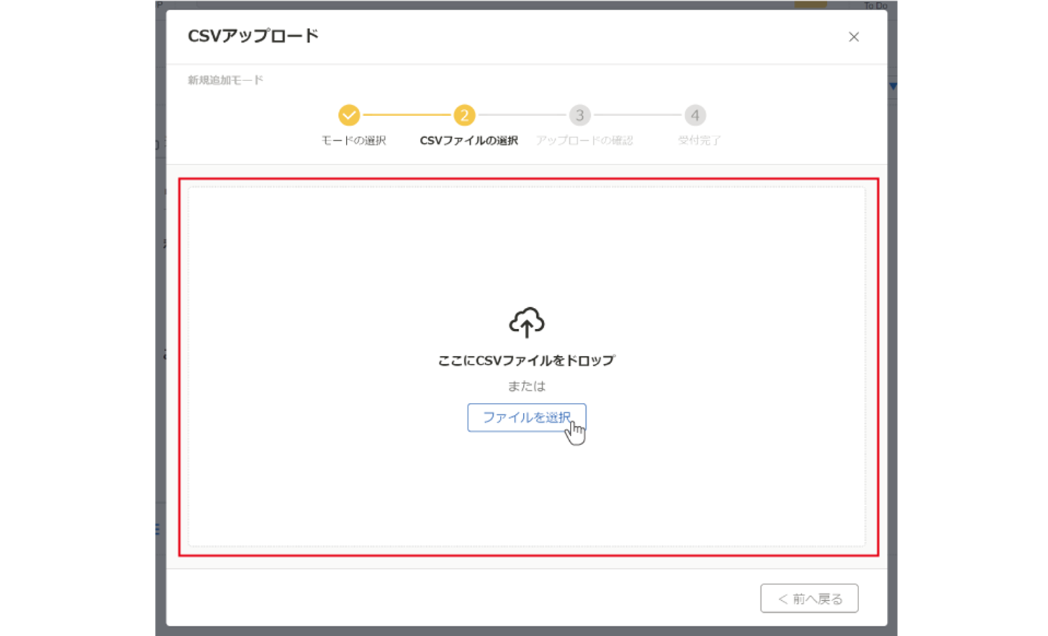⑤アップロードするCSVファイルを登録する