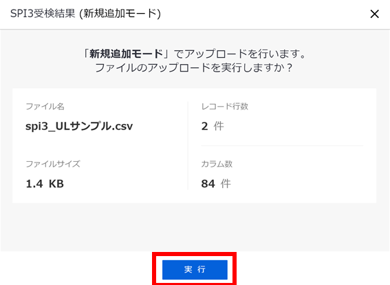 確認画面が表示されるので、内容に間違いがないことを確認し『実行』を選択します。