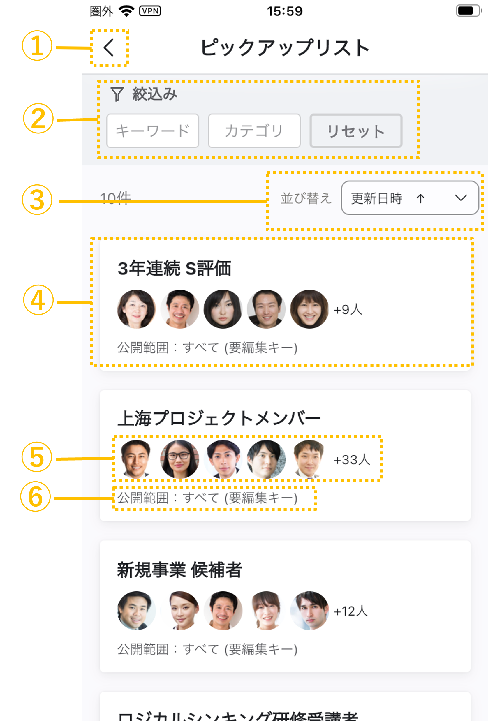 ⑤リストメンバー