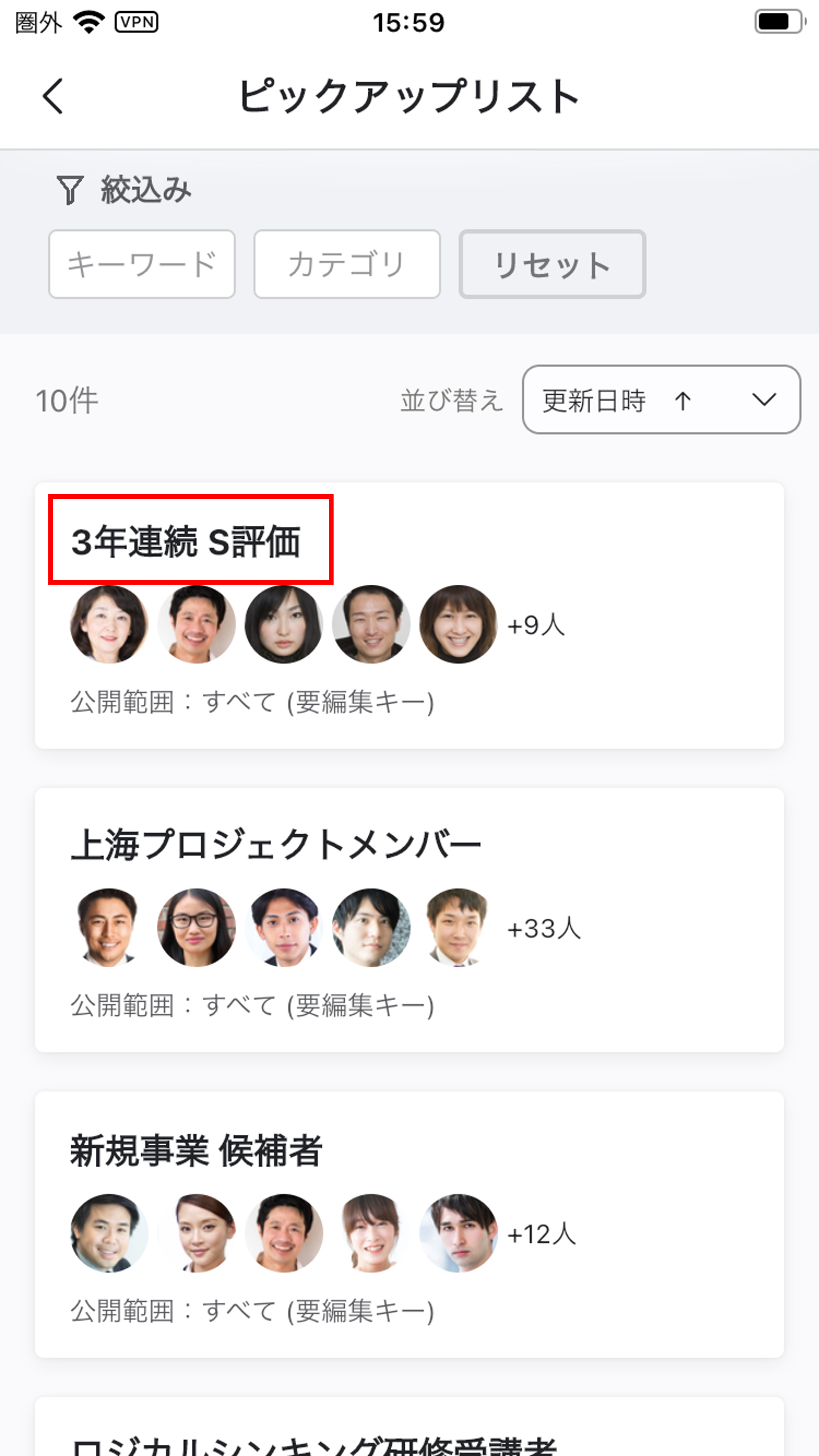 スマートフォンアプリでは、リストの新規作成/リスト編集/メンバー入れ替え/削除などの操作は行えません。