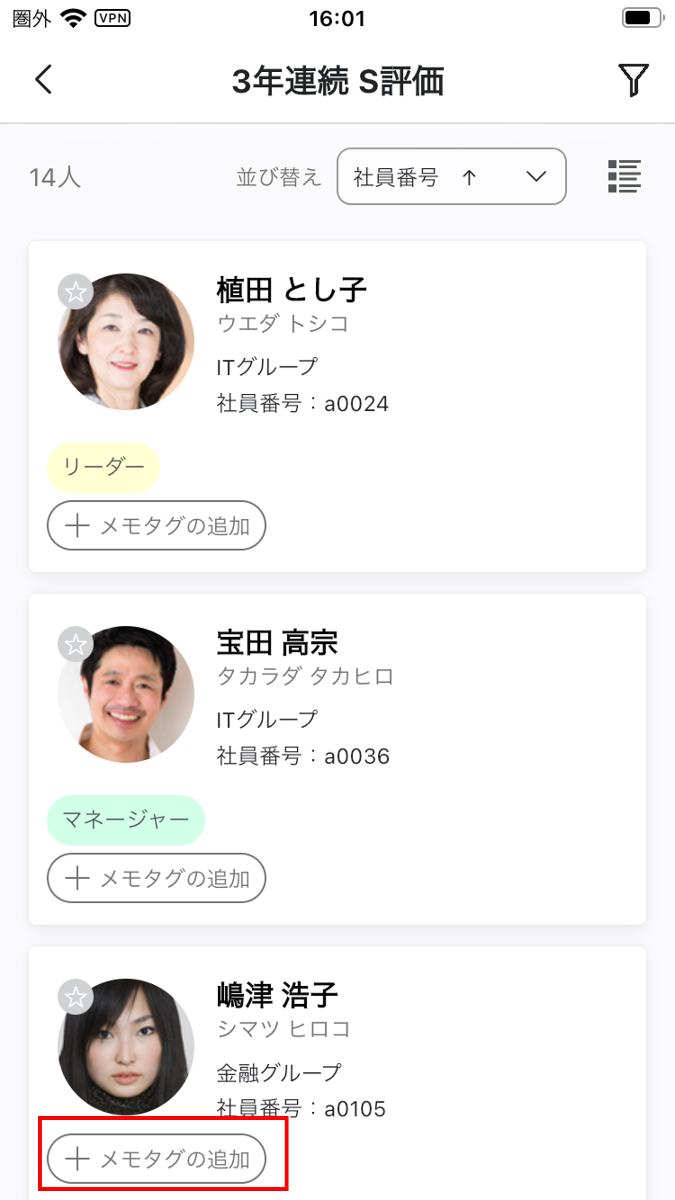 『+メモタグの追加』をクリックすると、入力欄が表示されます。