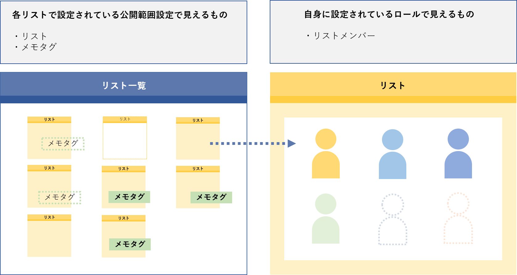 メモタグの公開範囲設定が「すべて」または「指定ロール:マネージャー」に設定されているリストで見える/編集できる。 -