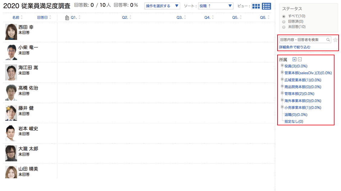 詳しい絞り込み方法は回答者の絞り込みをご覧ください