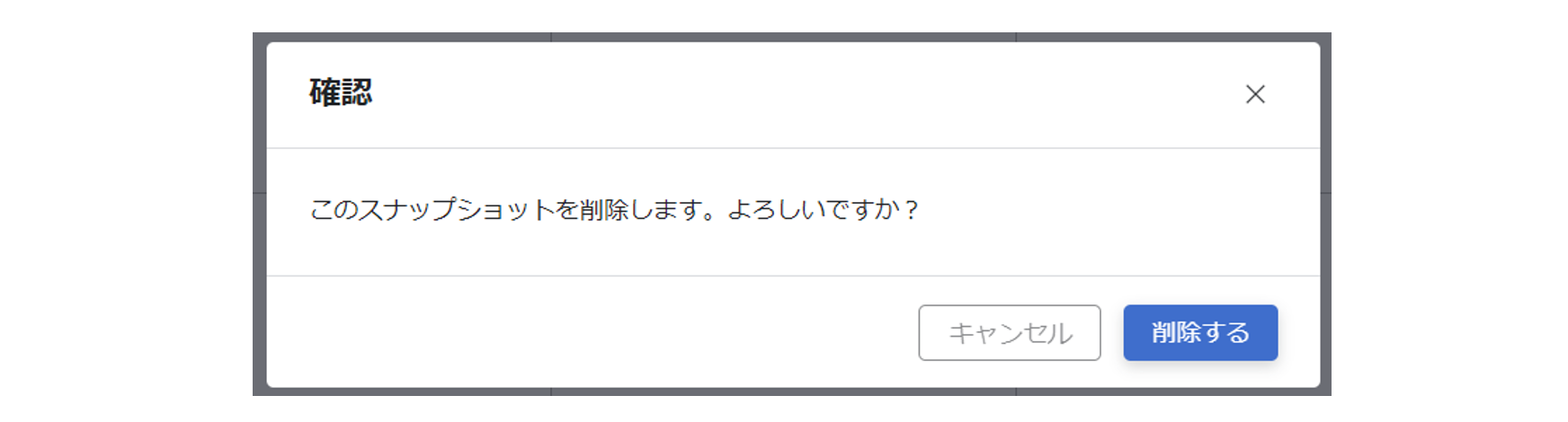 『表示中のスナップショットを削除』をクリックします。確認のポップアップが表示されるので、『削除する』をクリックします。