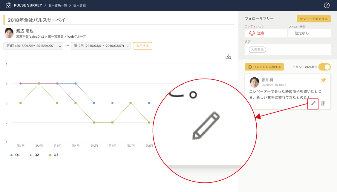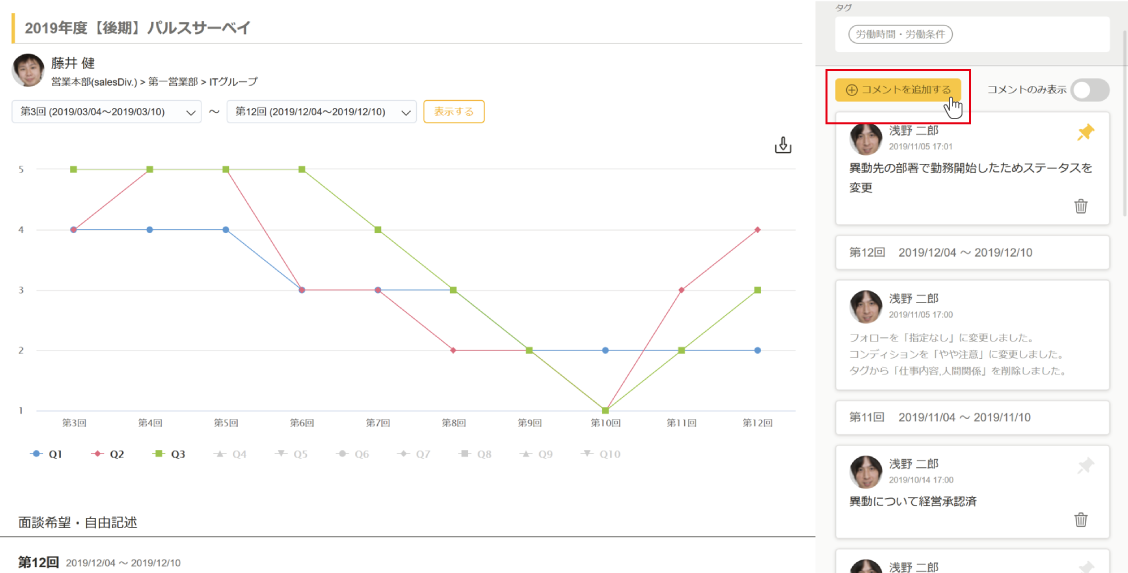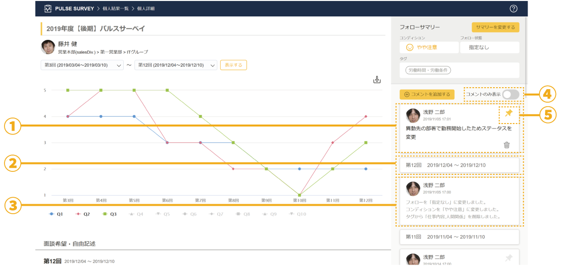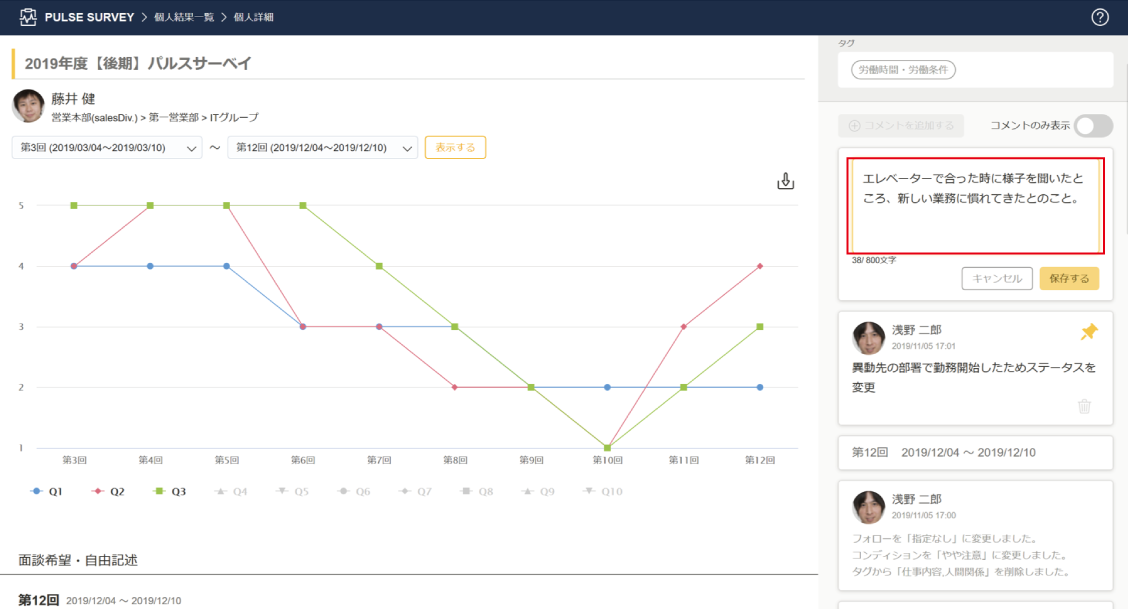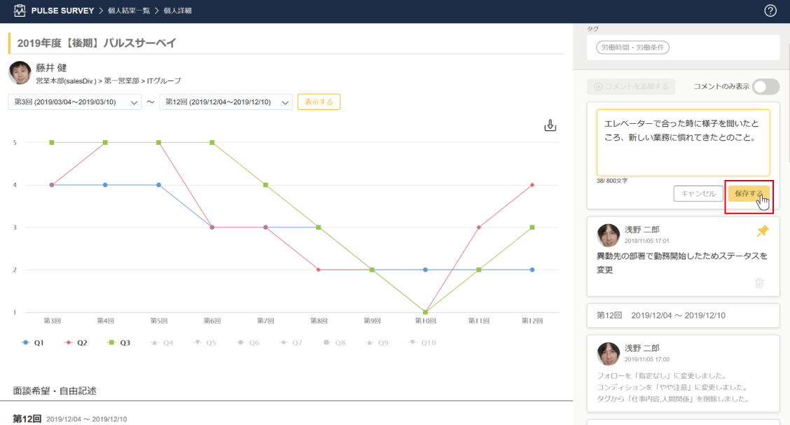 フォローサマリー入力の理由や面談の結果、日常のちょっとしたコミュニケーションで気づいたことなどを入力しておくとよいでしょう。