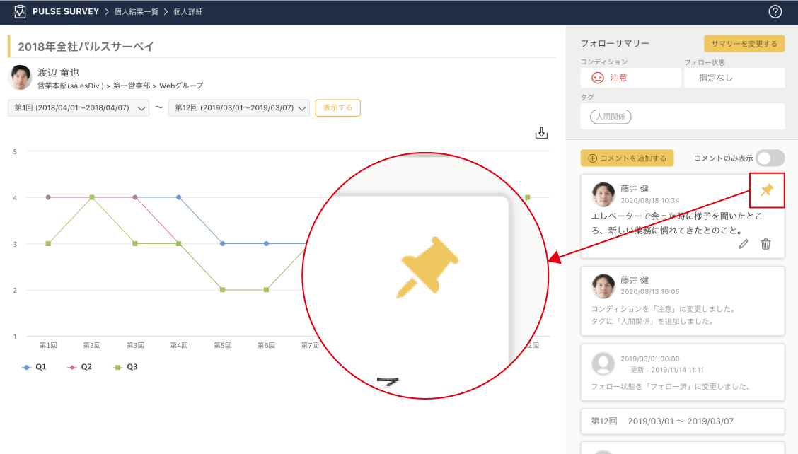 ピン止め状態のコメントは他のユーザーにも共有されます。