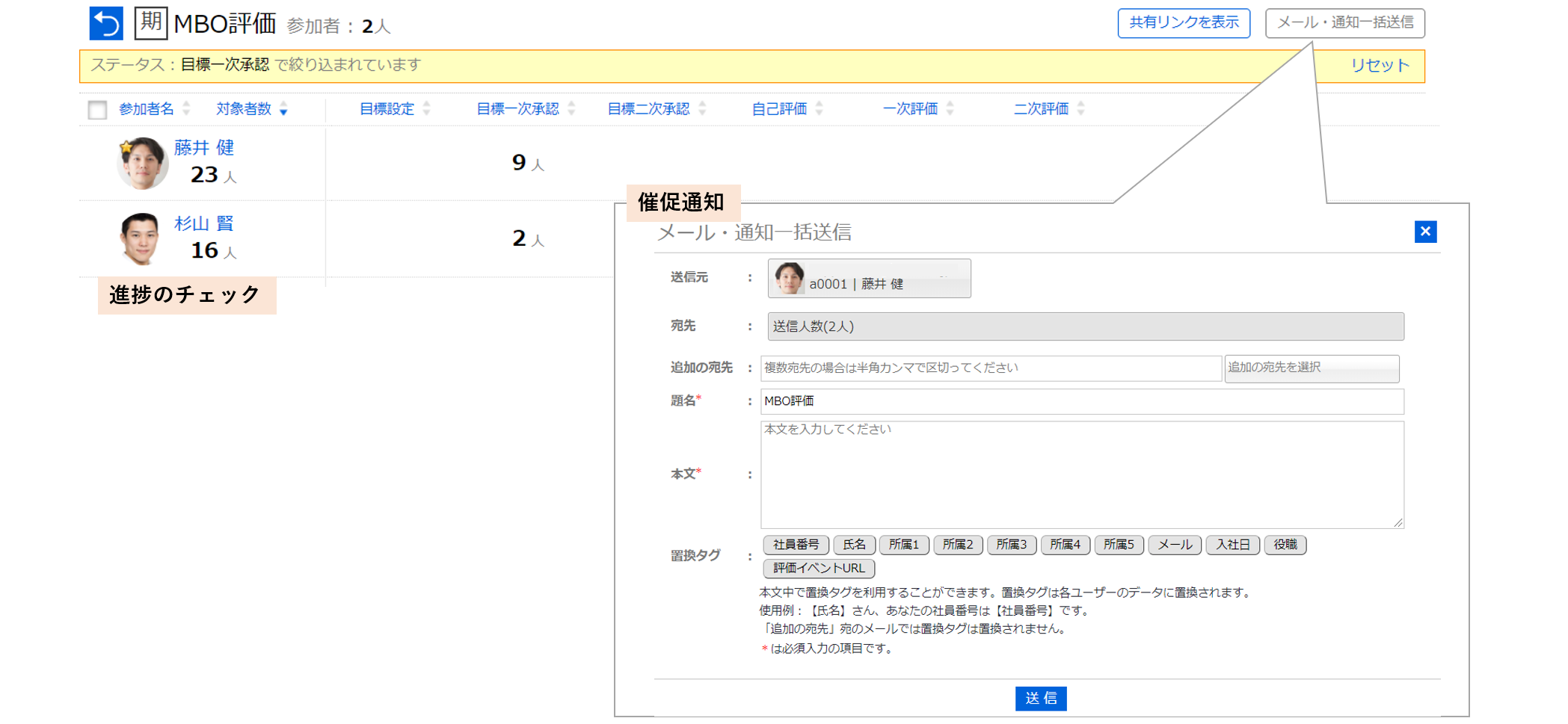 異動や入退社対応に伴う、対象者/評価者の変更作業です。