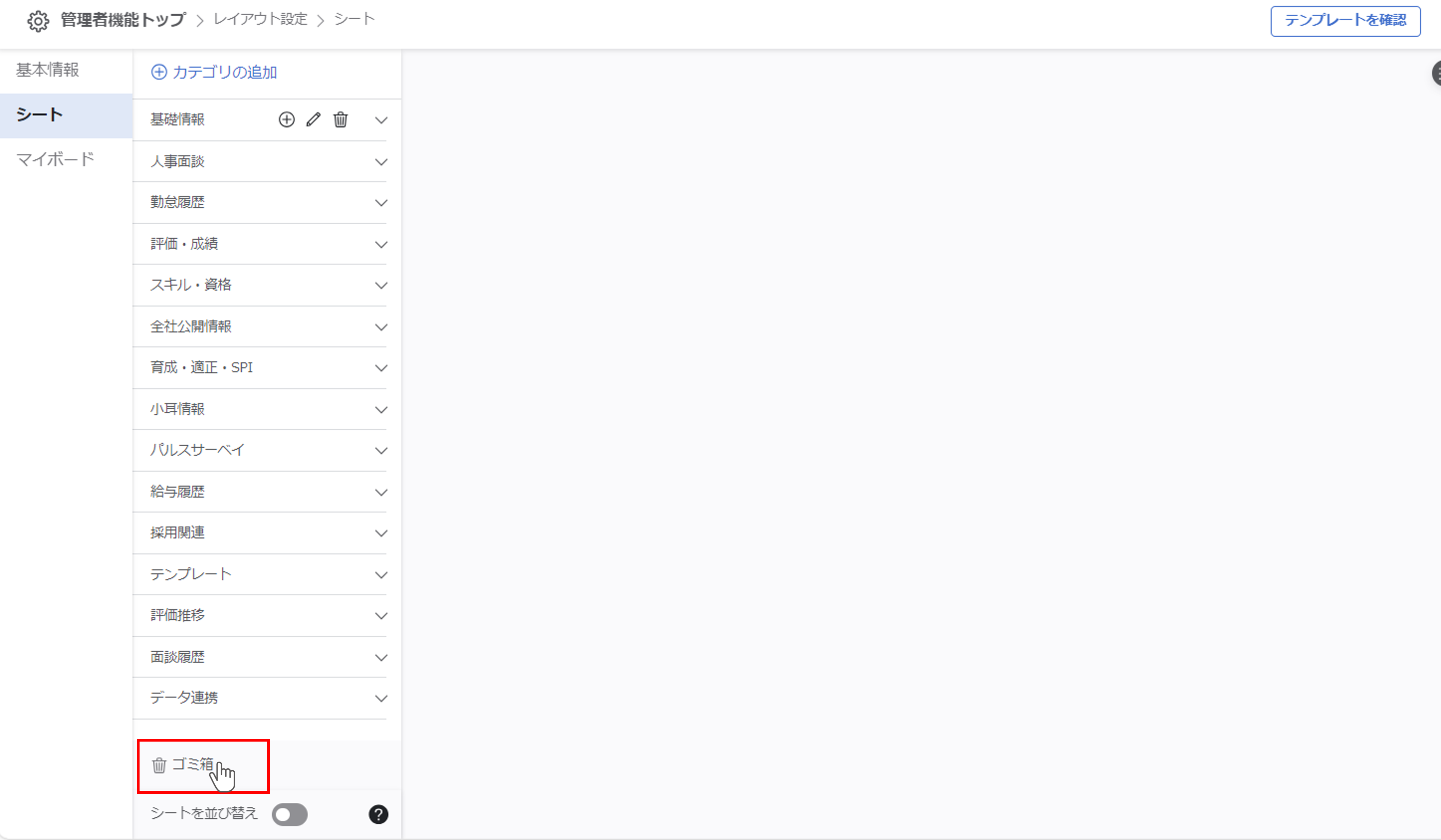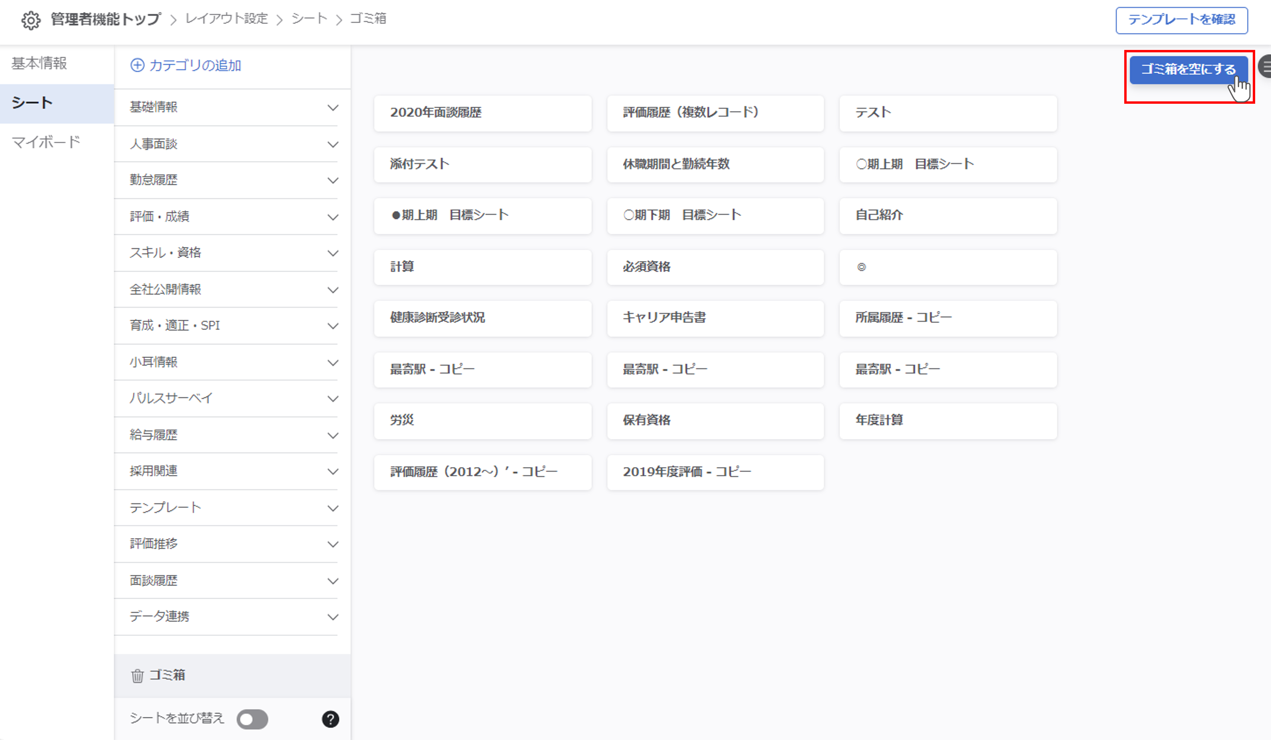 ゴミ箱内のシートを削除する場合は画面左下の『ゴミ箱』をクリックします。