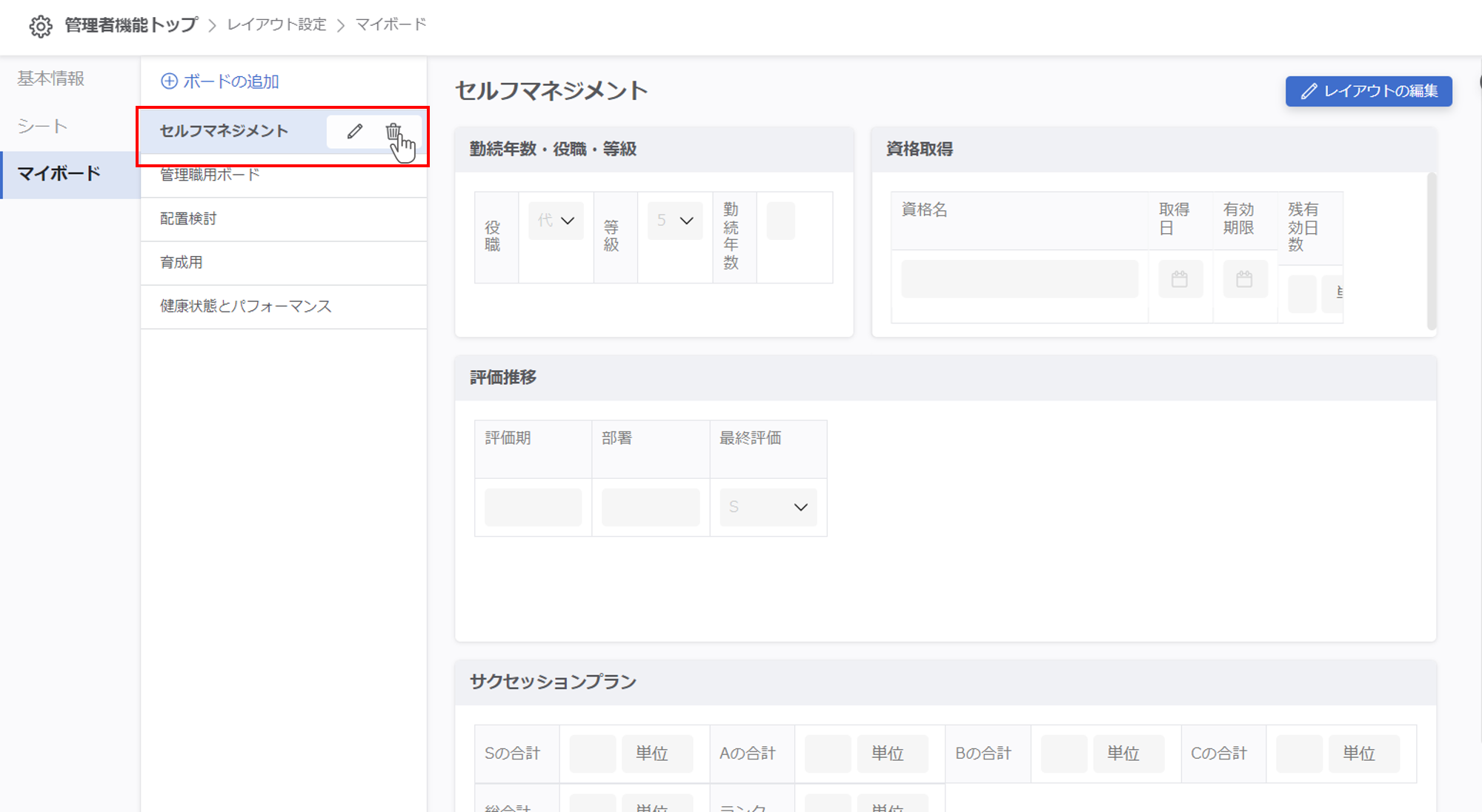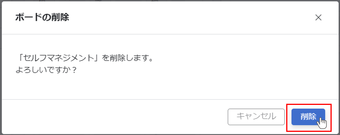 削除したいボードにカーソルを合わせると表示される『ゴミ箱』アイコンをクリックします。