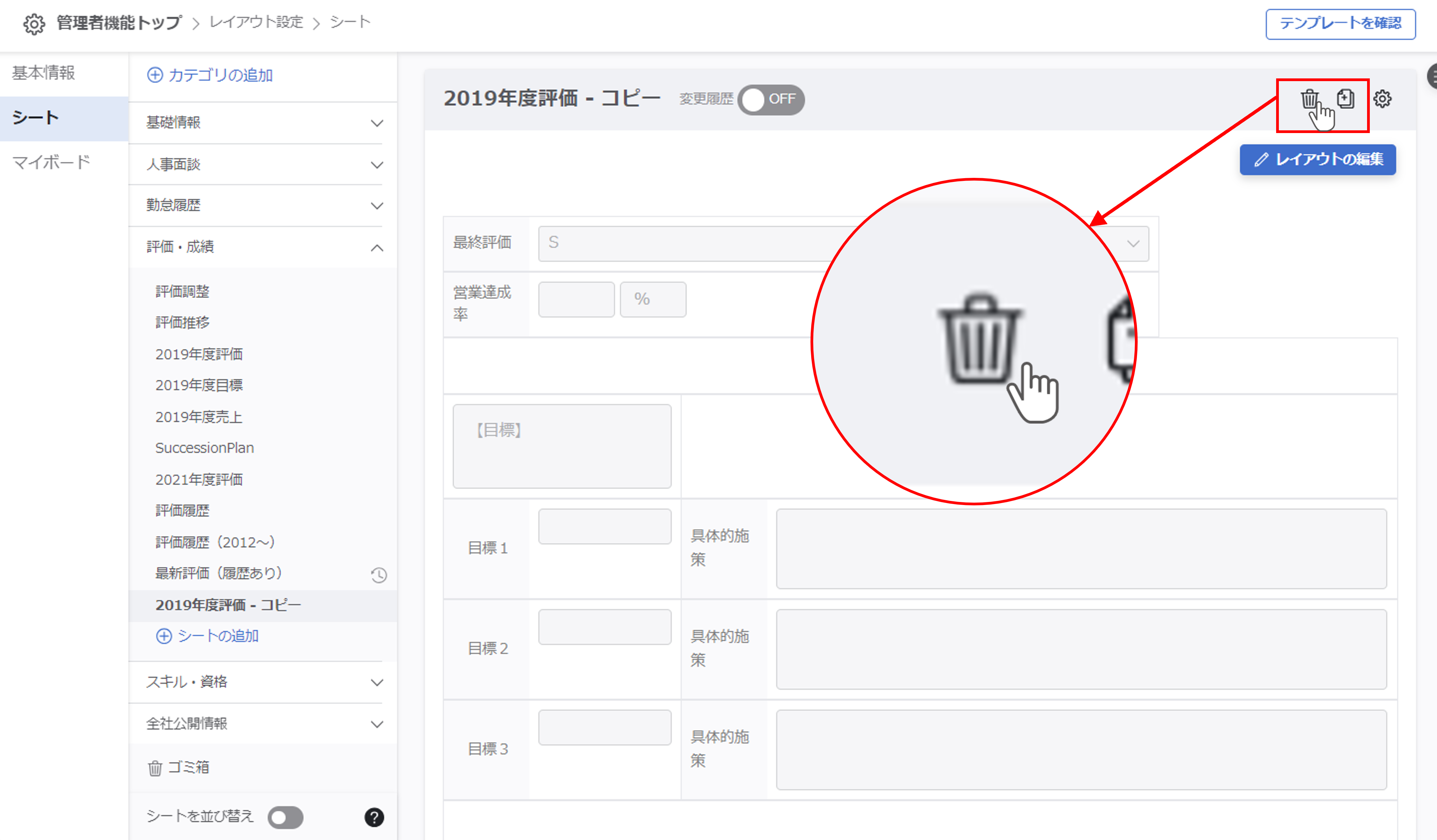 画面右上の『ゴミ箱』アイコンをクリックします。