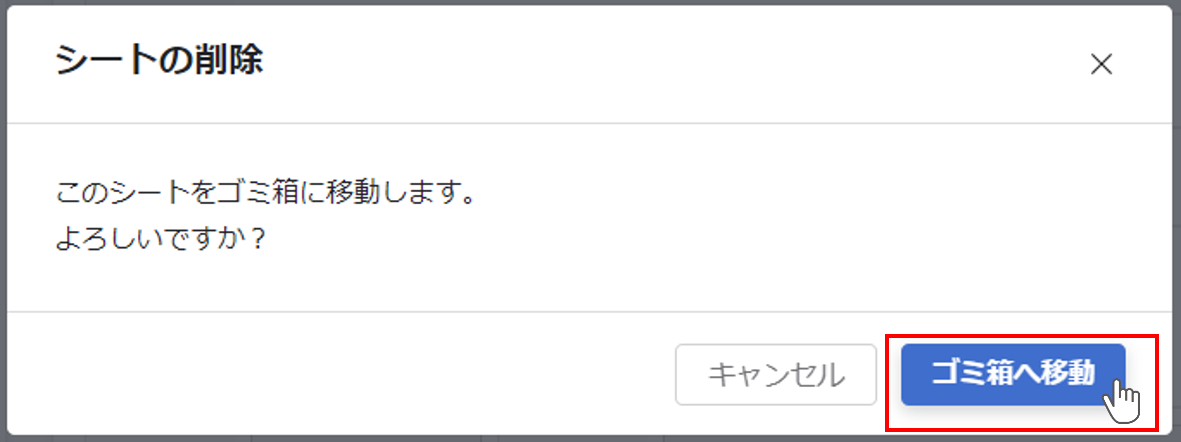 確認メッセージが表示されるので『ゴミ箱へ移動』ボタンをクリックします。