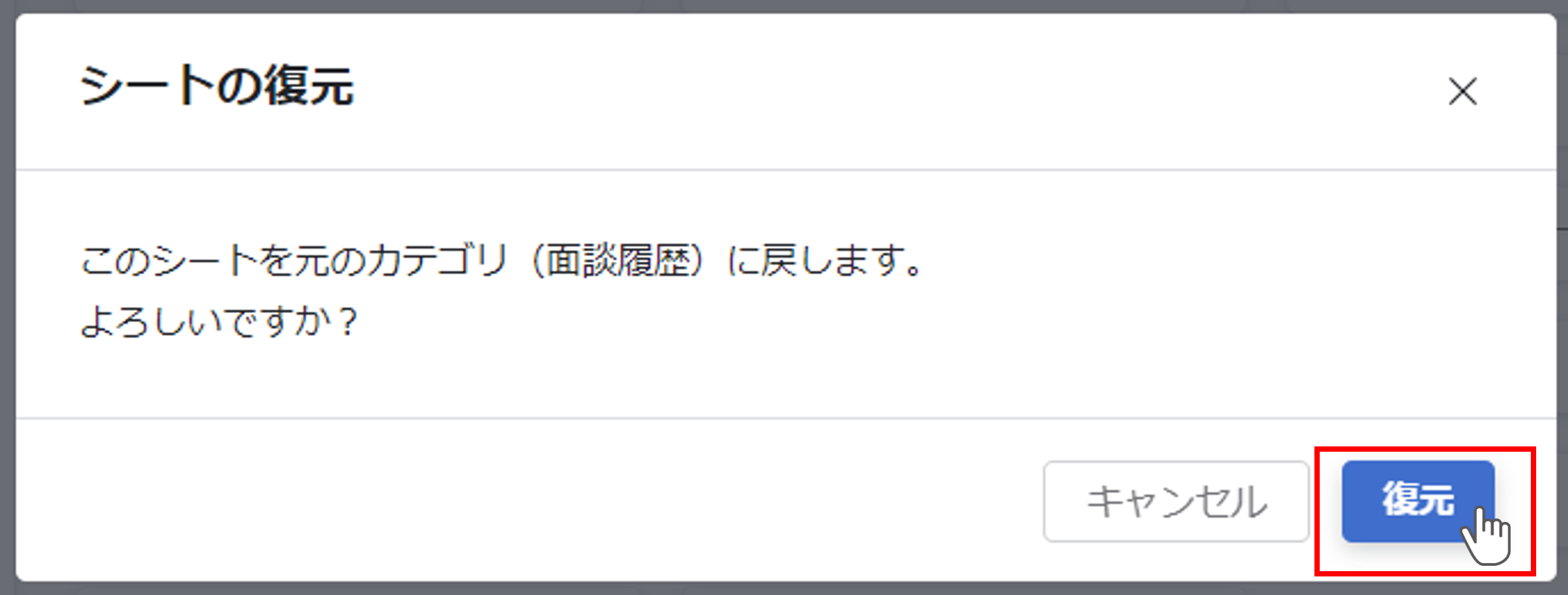 確認メッセージが表示されるので『復元する』ボタンをクリックします。