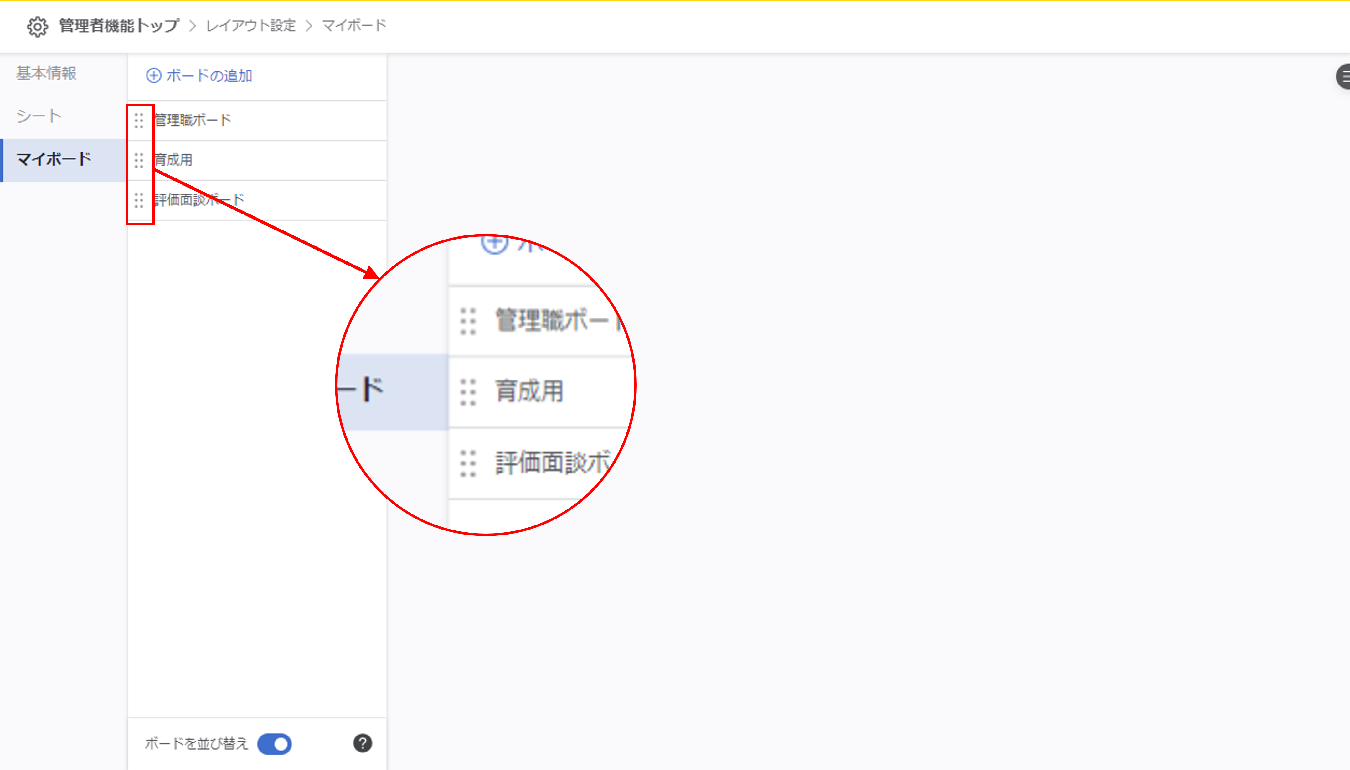 マイボードを並び替える