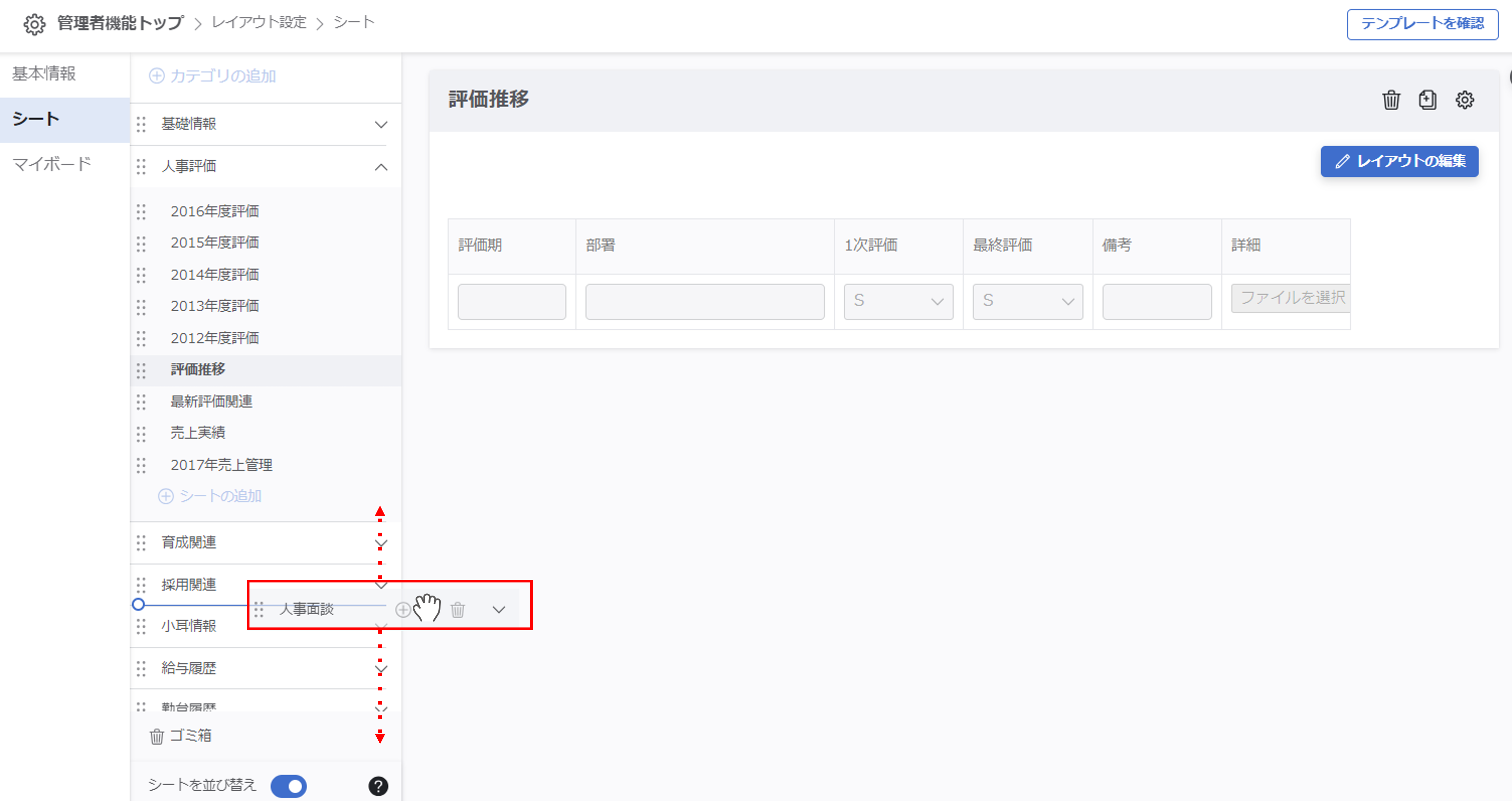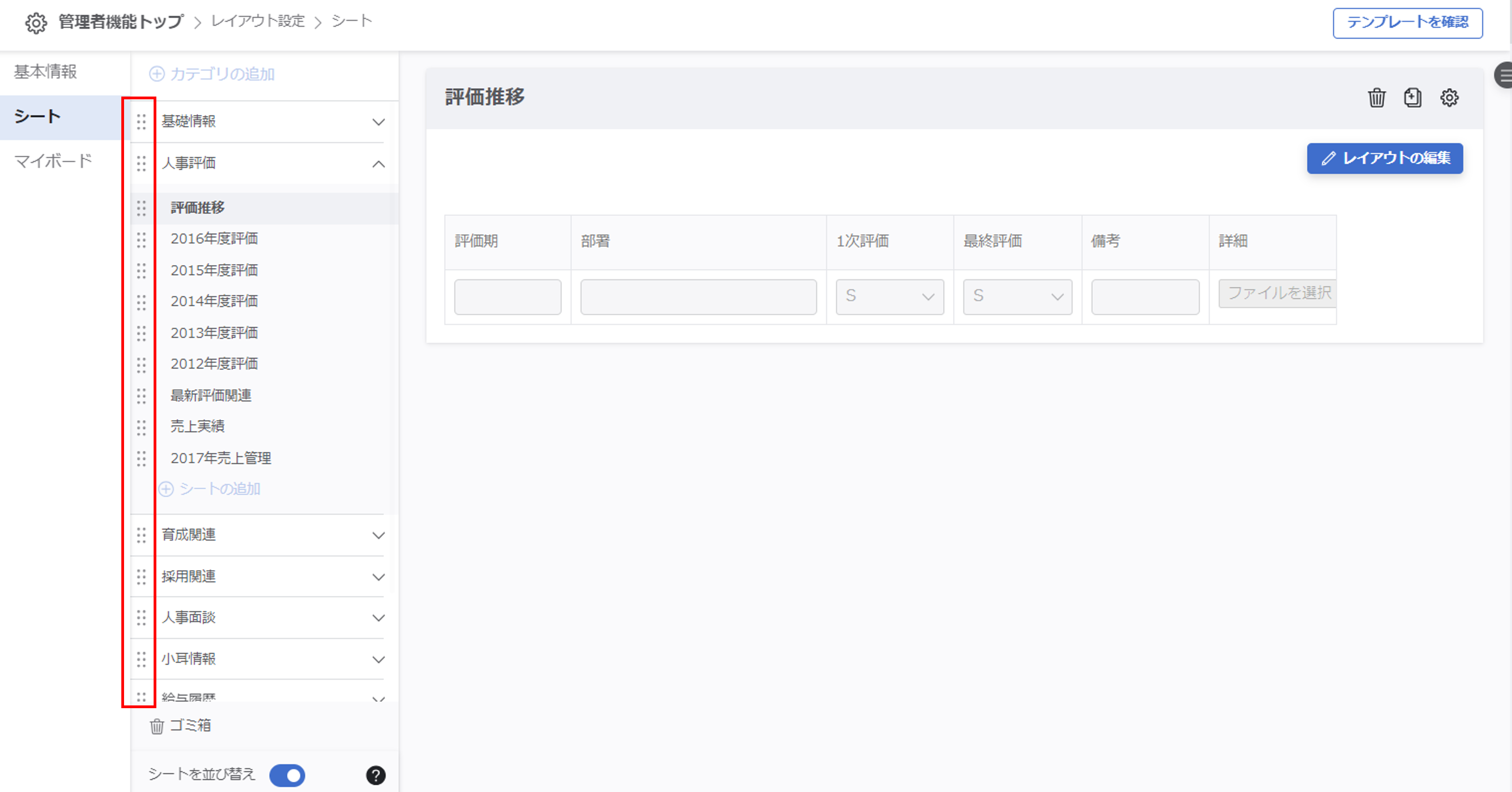 シート/シートカテゴリを並び替える