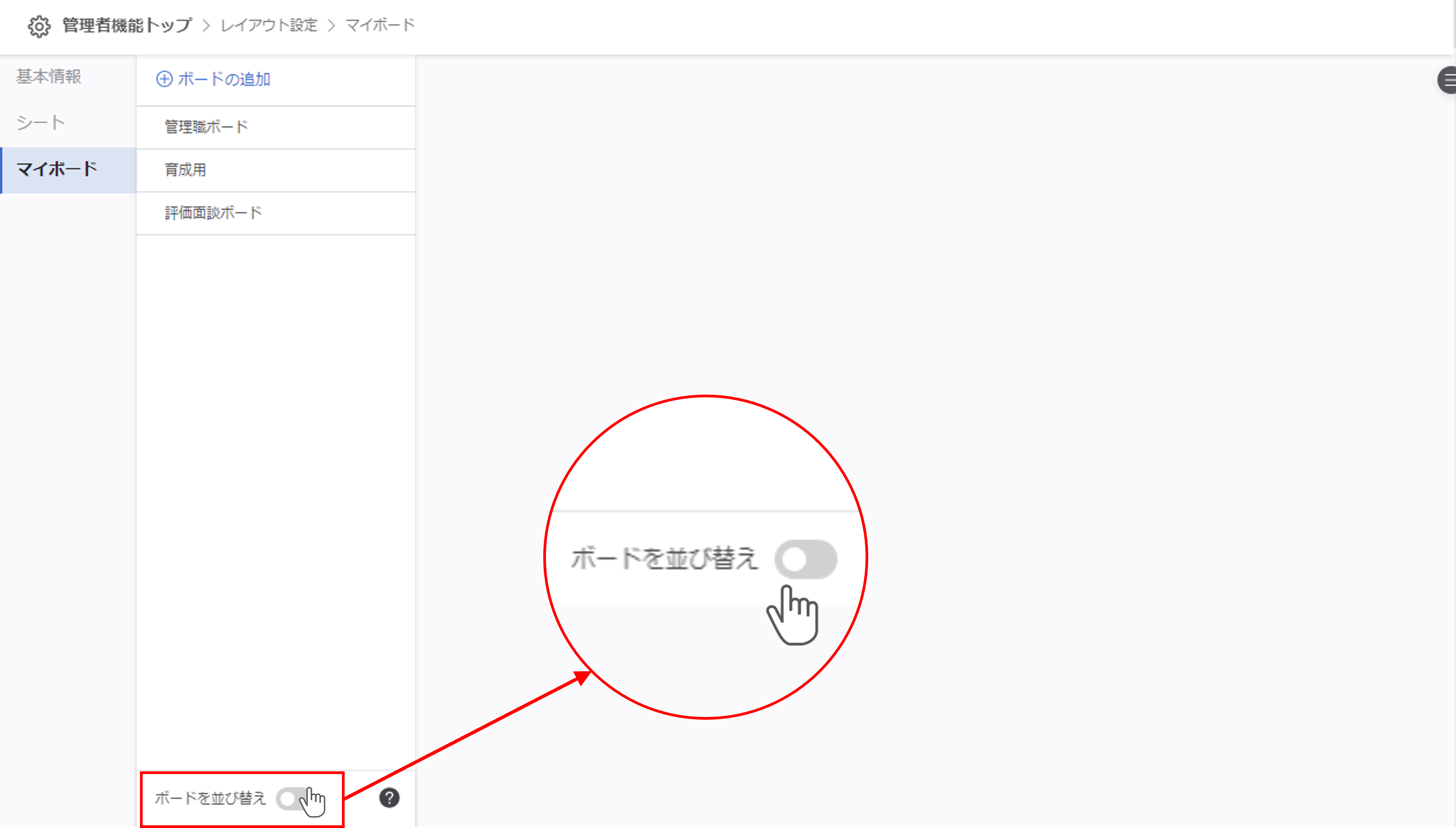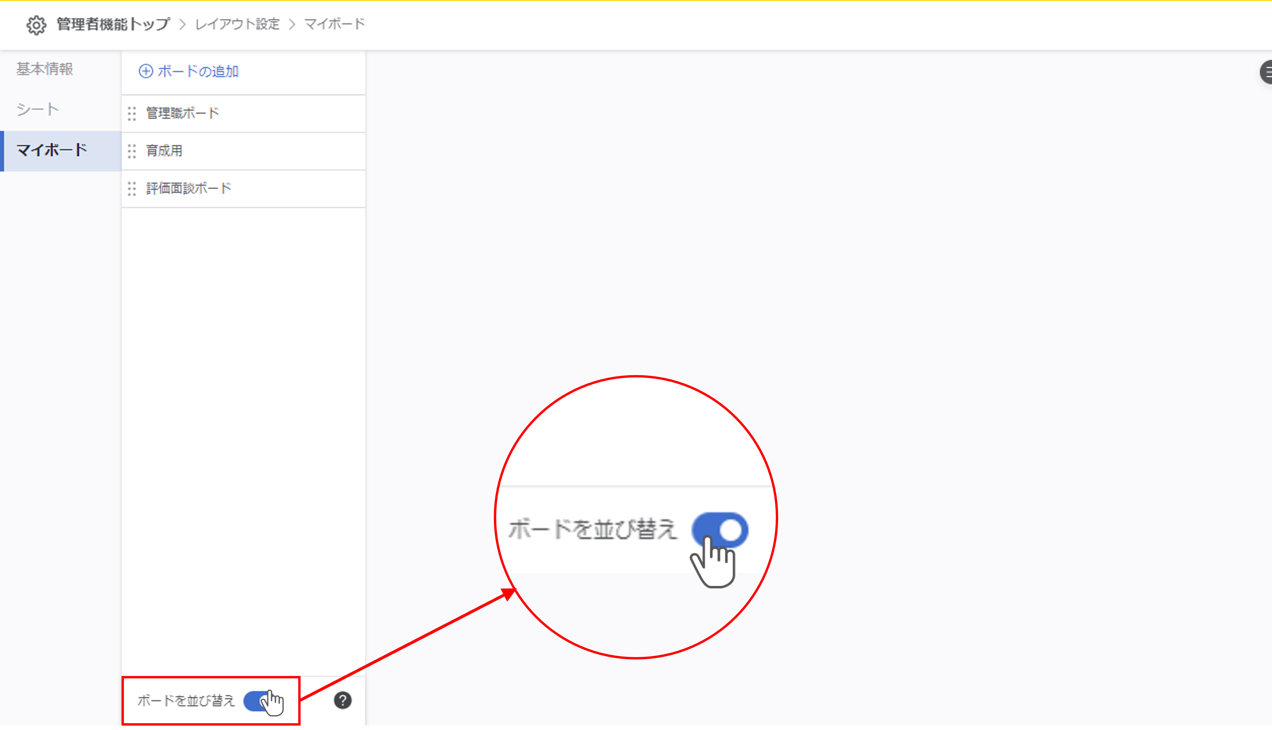 画面下部の『ボードを並び替え』をクリックします。