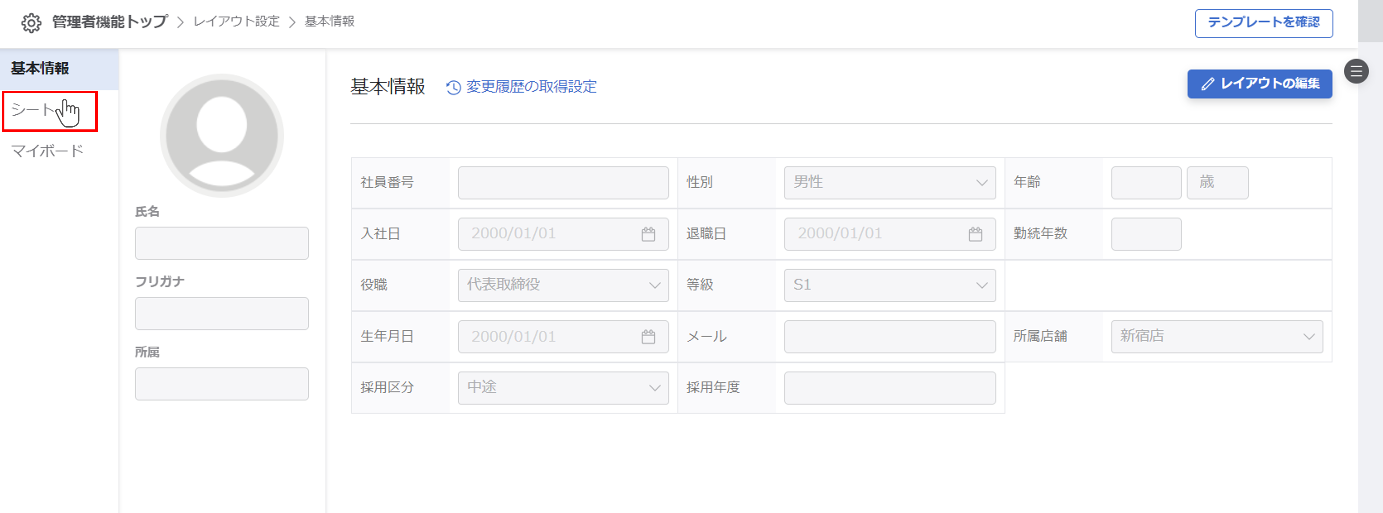 ①『シート情報のレイアウト設定』モードに切り替える