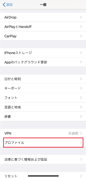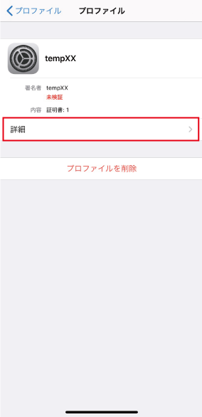 ダウンロードした証明書が表示されるので「ダウンロード済みプロファイル」から証明書をタップします。