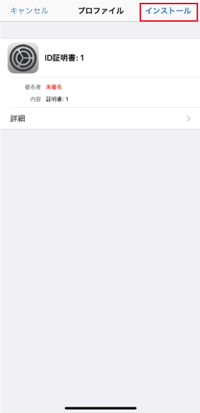 証明書の詳細画面が表示されるので、「インストール」をタップします。