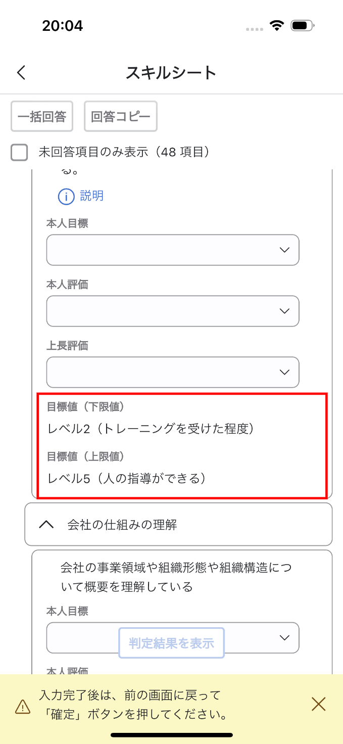 - スキルシートにて、ディクショナリの項目出し分け設定で設定された目標値の上限・下限を表示できるようになりました(『目標値』パーツ)。