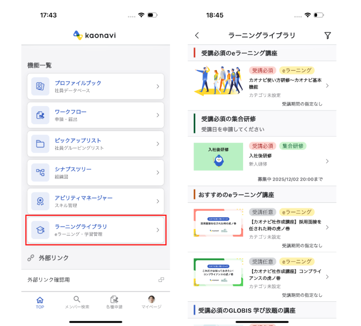 この度のバージョンにて、アプリでもラーニングライブラリが利用できるようになりました。
