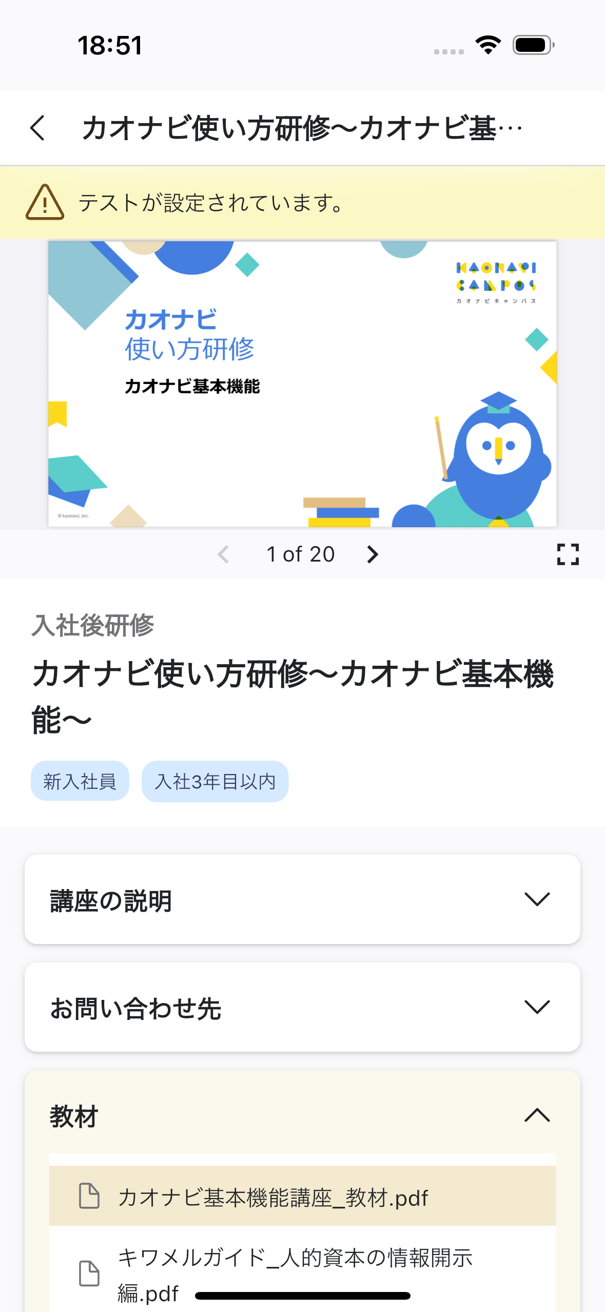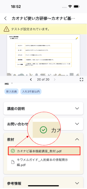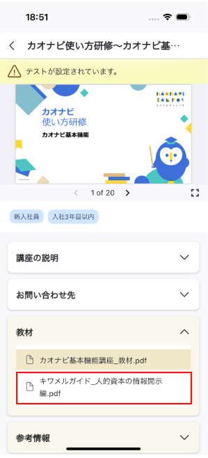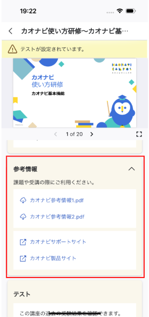 ユーザーが申し込んだ日程が開始すると、講座内の教材やテストを受講できます。
