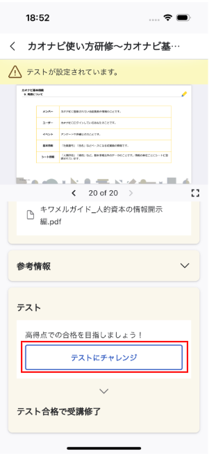 画面内に表示される『テストにチャレンジ』をタップします。