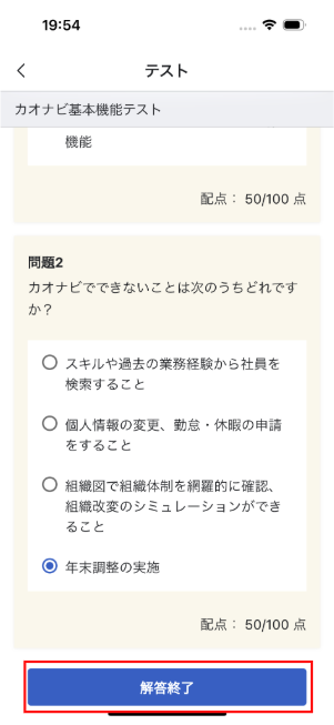 解答が完了したらテスト画面最下部の『解答終了』をタップします。