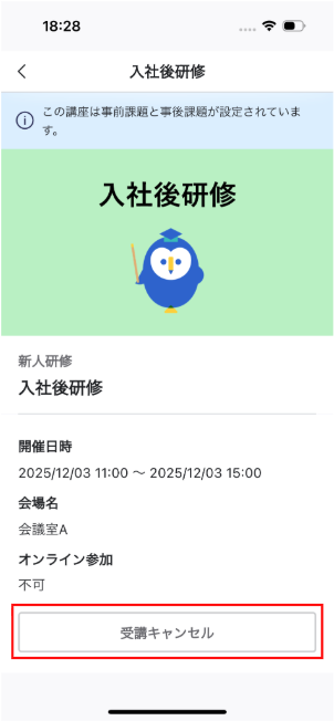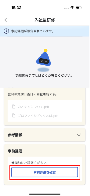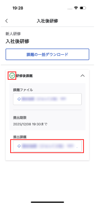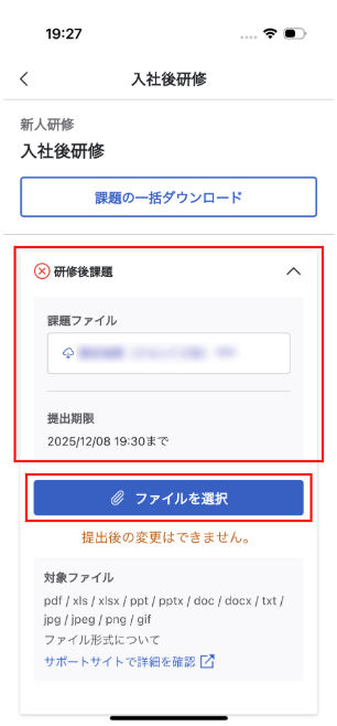 また、事後課題が設定されている場合は、研修受講後に課題を提出することができます。